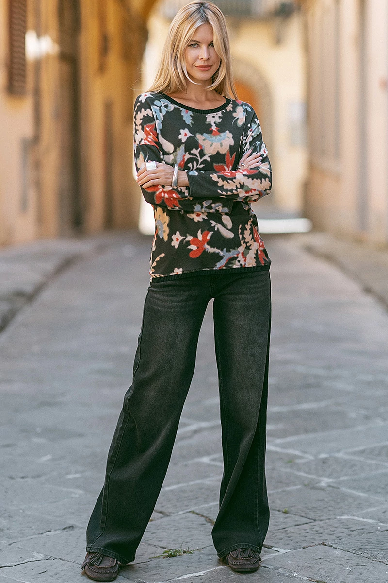 Ötzsebes farmer, magasabb derékrésszel, egyenes, bővebb szárral, cipzárral, gombbal záródó üleppel. A nadrág anyaga puha, rendkívül rugalmas farmer anyag.