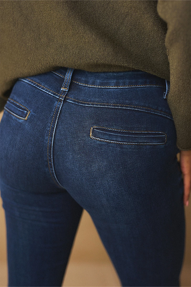A magas derekú flare farmer alakformáló hatású, hangsúlyozza a derekat és finoman hosszabbítja a lábakat. Rendkívül nőies fazon. Elöl zsebekkel és dísz zsebek hátul. A szára lefele zélesedő. Elöl cipzárral és gombbal záródik. Az anyaga puha, rugalmas, kényelmes farmer anyag.