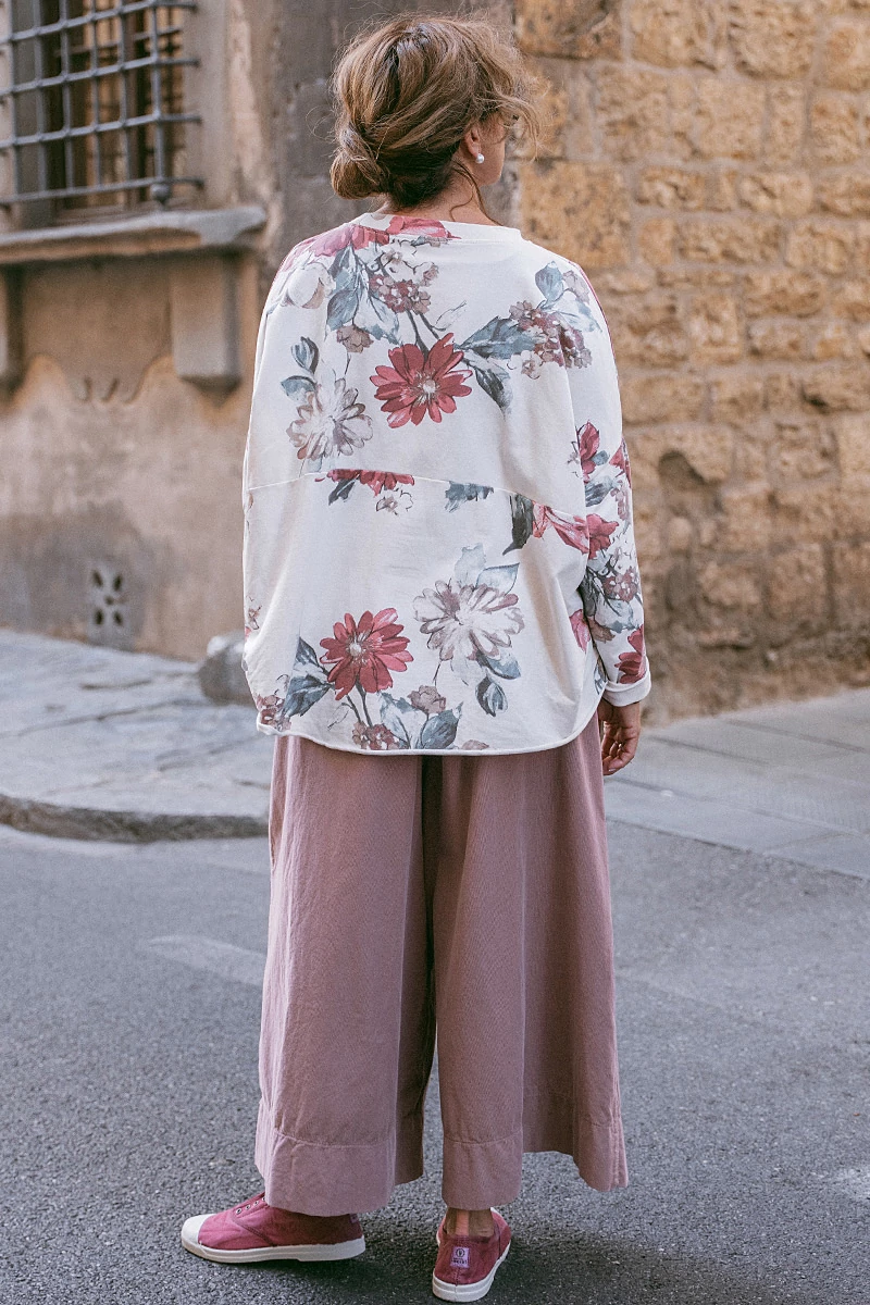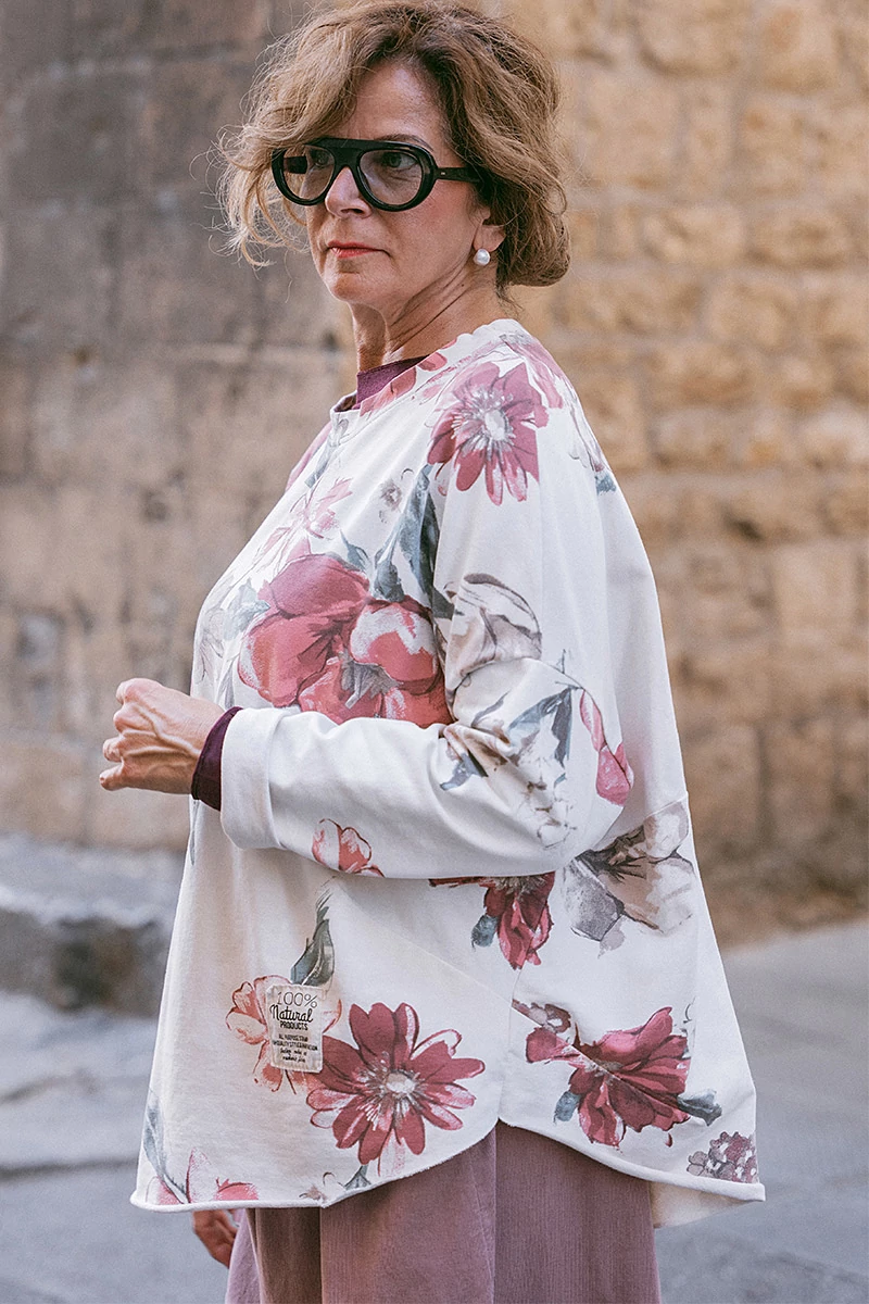 Lezser fazonú, oversize felső gömb fazonnal, varrásokkal, ovális nyakkal. Az alja lézervágott. Az anyaga rendkívül puha, rugalmas pamut.