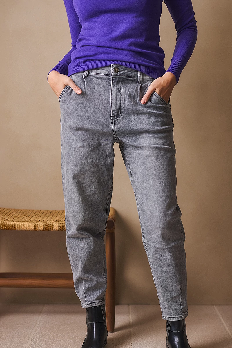 Ez a ballon fazonú farmer a lezser stílus és a modern részletek találkozása. Négy zsebes kialakítása a klasszikus farmerhangulatot idézi, míg a cipzáros-gombos derék és a finom becsípések a szabásvonalnál karakteres formát adnak. A szár alján futó szűkítő varrás határozott, mégis nőies sziluettet rajzol. Az anyaga rendkívül puha, rugalmas farmeranyag, a viselése rendkívűl komfortos. Kényelmes, stílusos és önmagában is egy erős alap a mindennapi öltözködéshez.