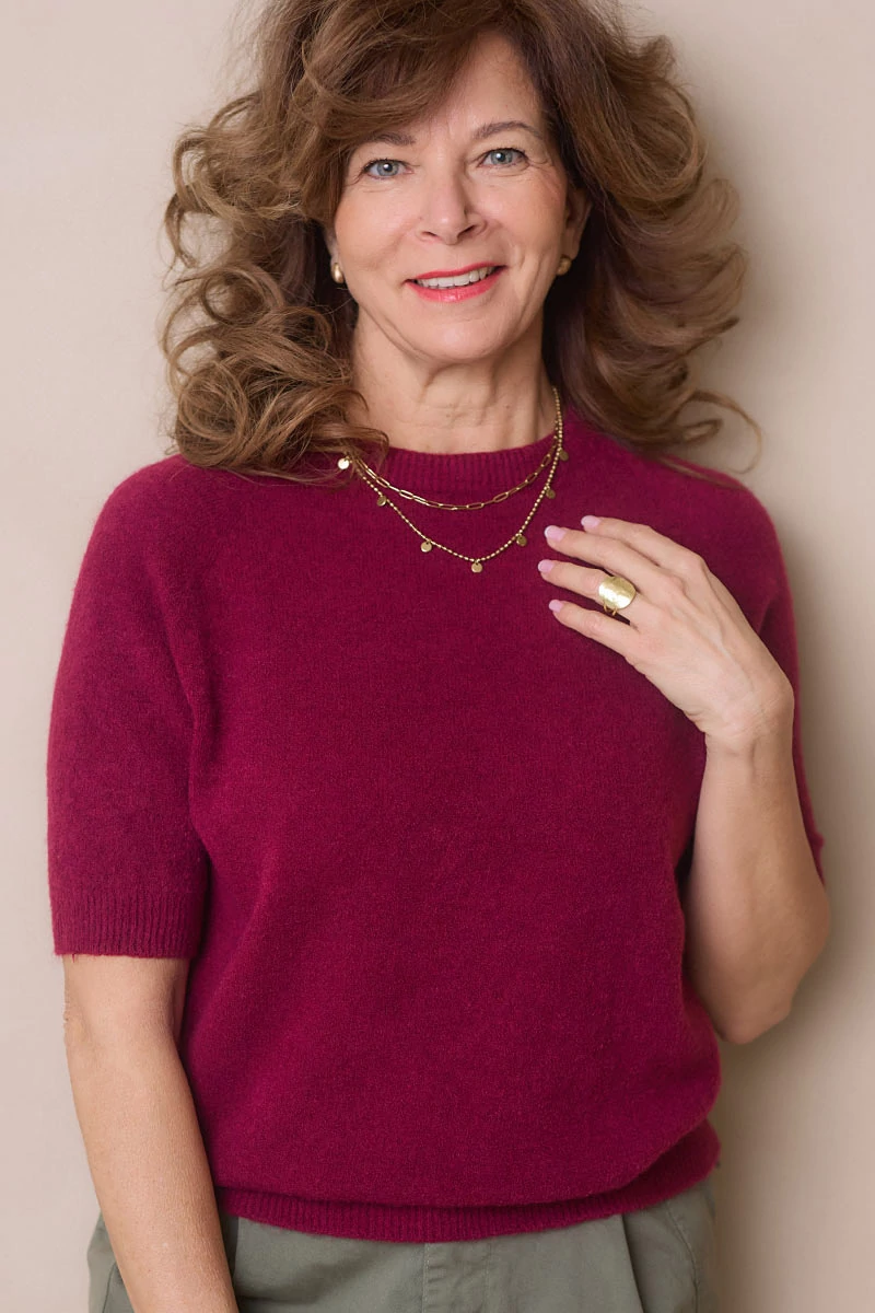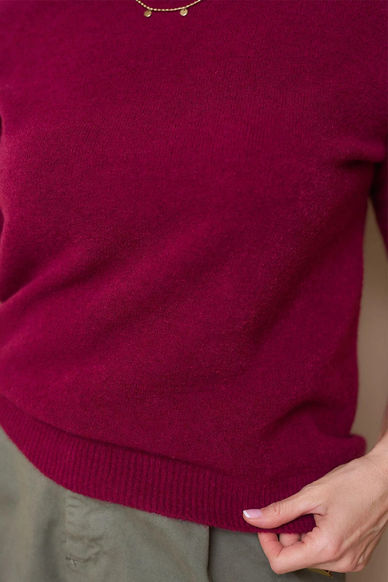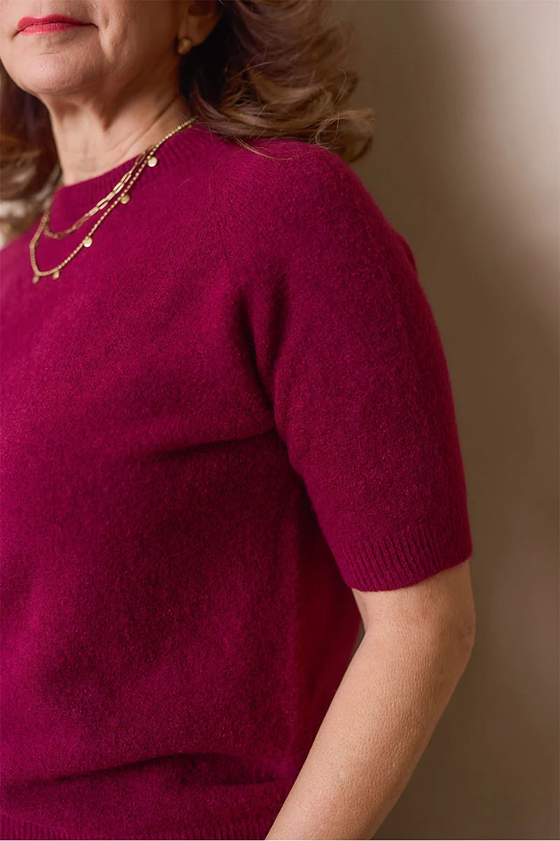 Lágy esésű, finom tapintású kötött felső, ami egyszerre kényelmes és nőies.A passzés, rövid raglán ujj könnyed mozgást enged, és laza eleganciát sugall. Egyszerre sportosan természetes és finoman sikkes.