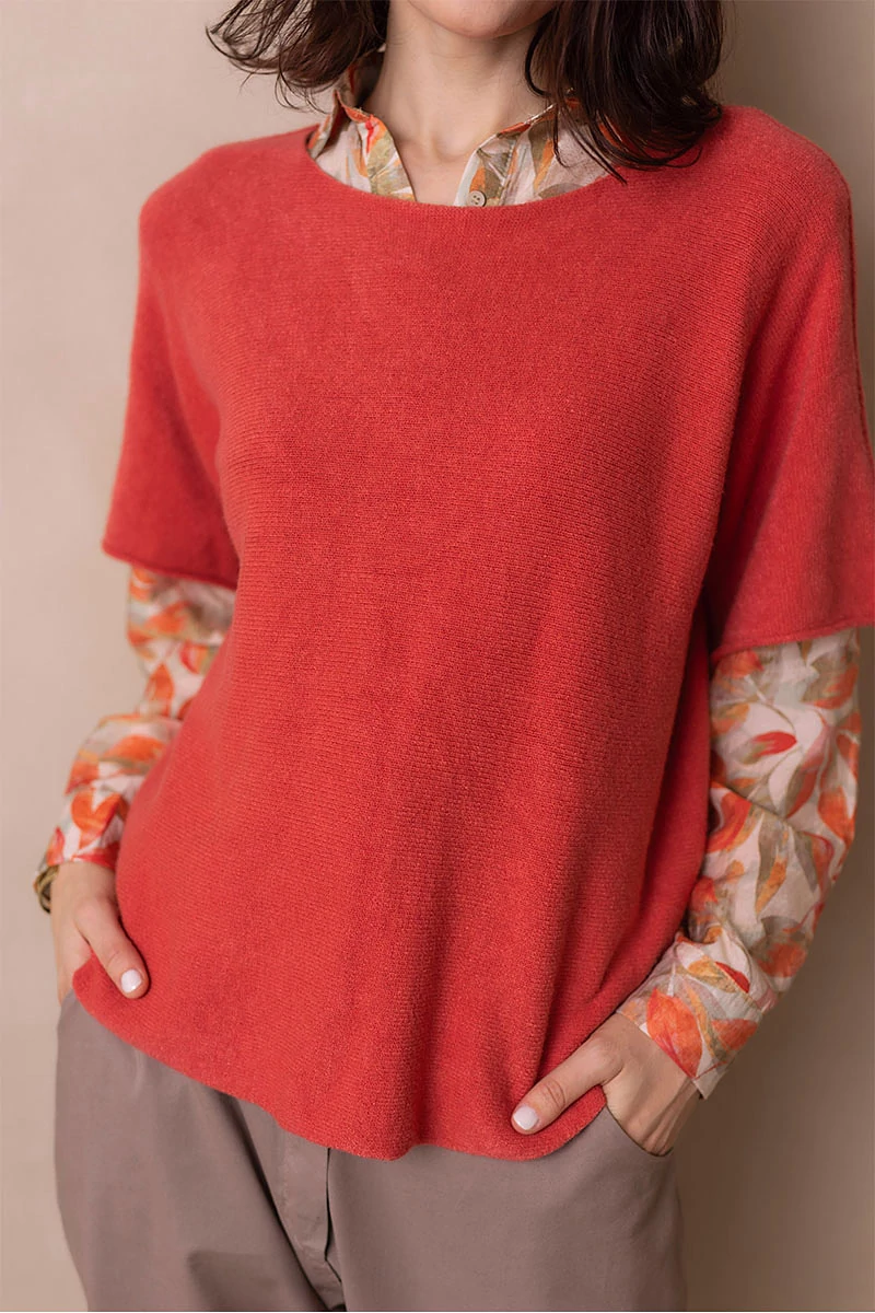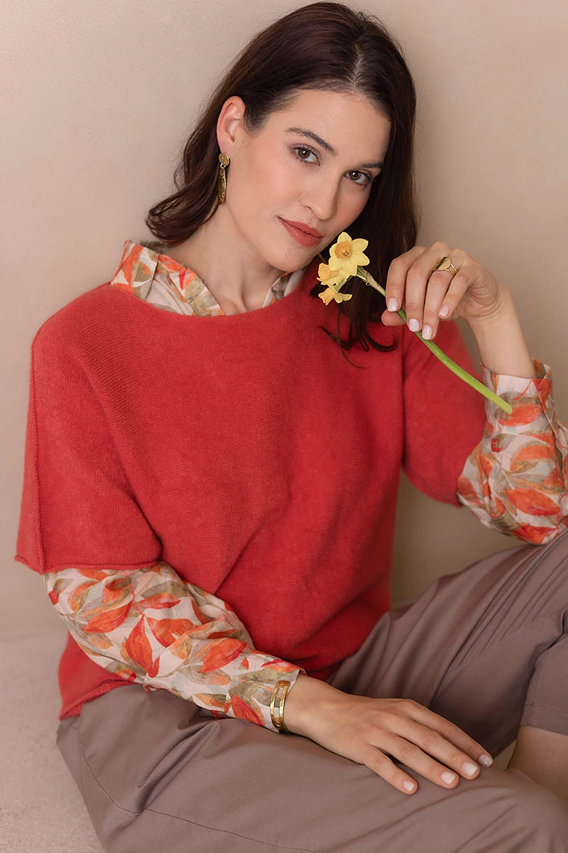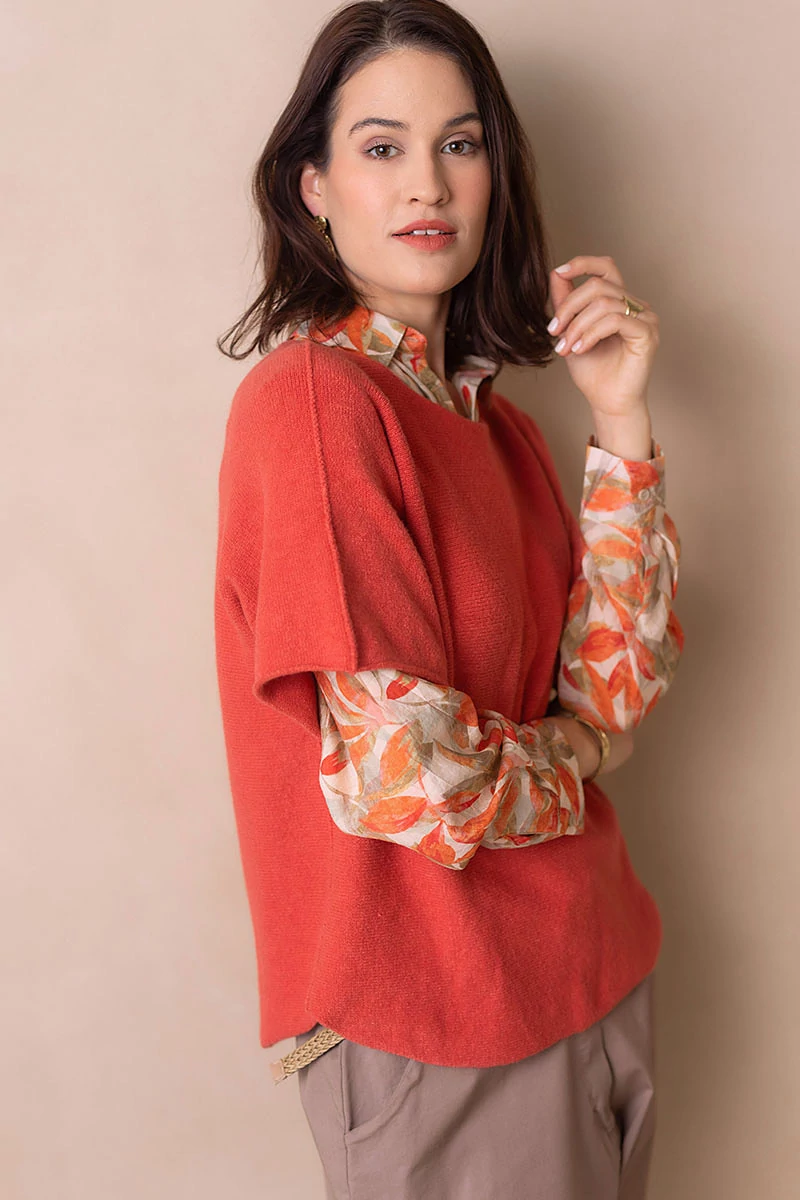 Lágy esésű, finom tapintású kötött felső rövid ujjal, ami egyszerre kényelmes és nőies. A lezserebb fazon könnyed mozgást enged, miközben laza eleganciát sugall. Passzé nélküli végei szabadabb, játékosabb hatást keltenek, a kör nyakkivágás pedig kiemeli a nyak vonalát, így egyszerre sportosan természetes és finoman sikkes.