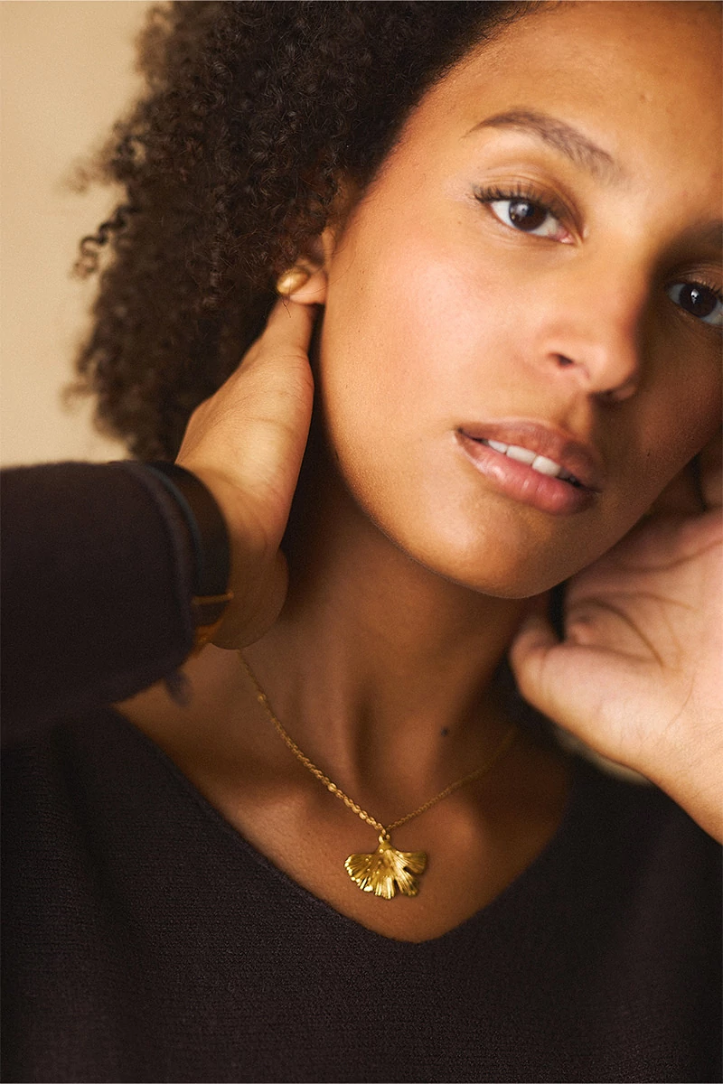 Gyöngy hatású, matt felületű, arany színű bedugós fülbevaló.