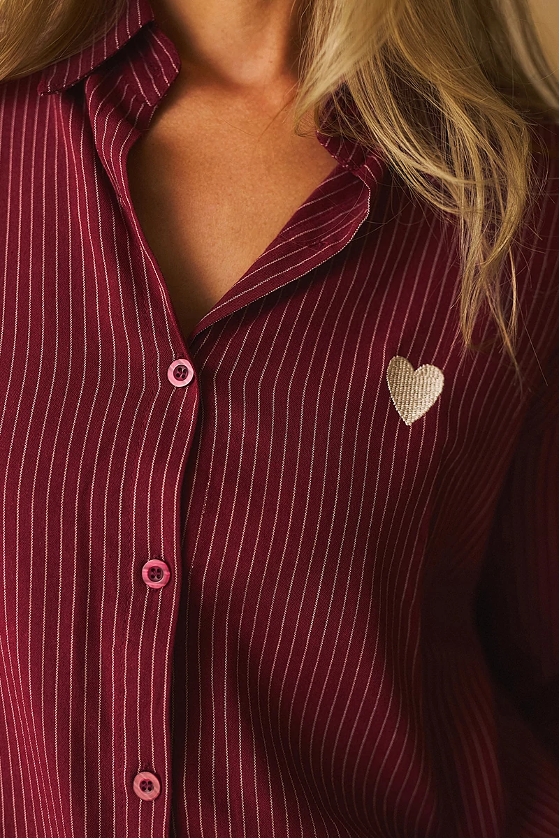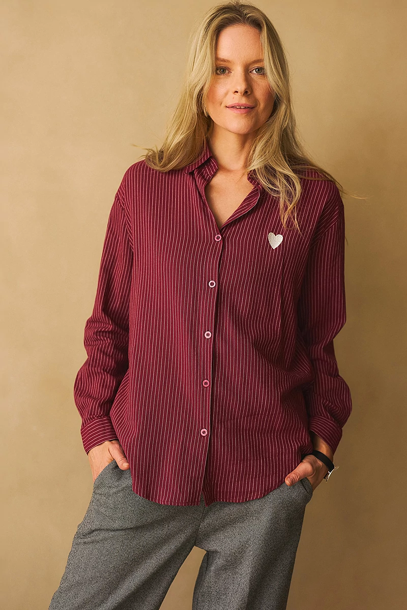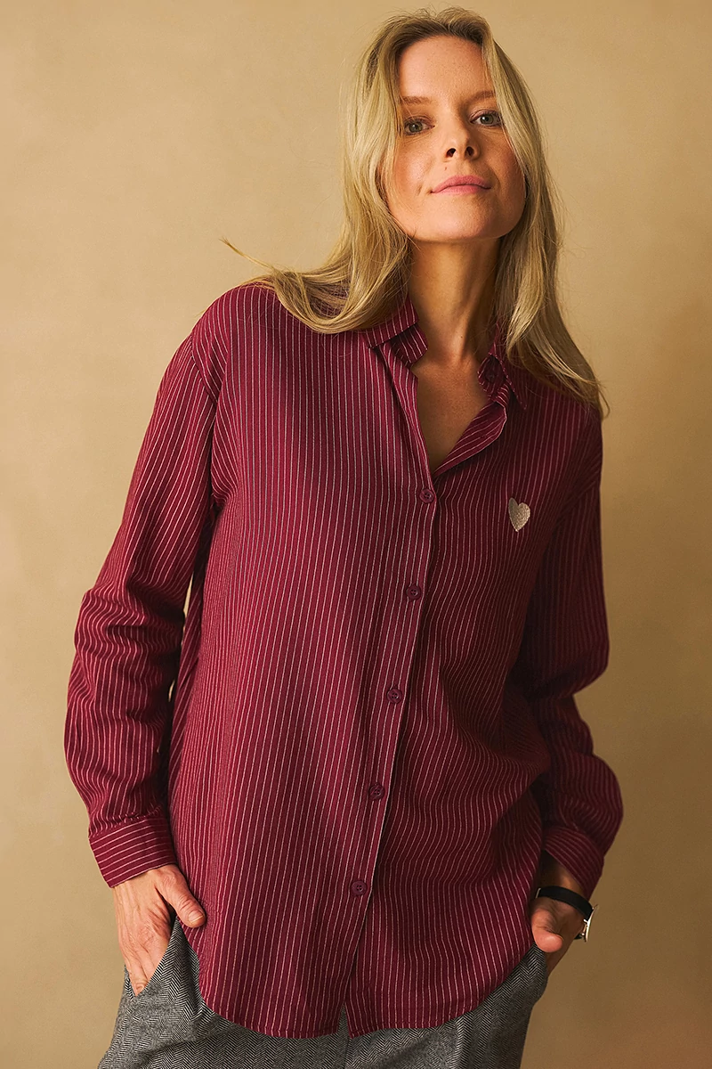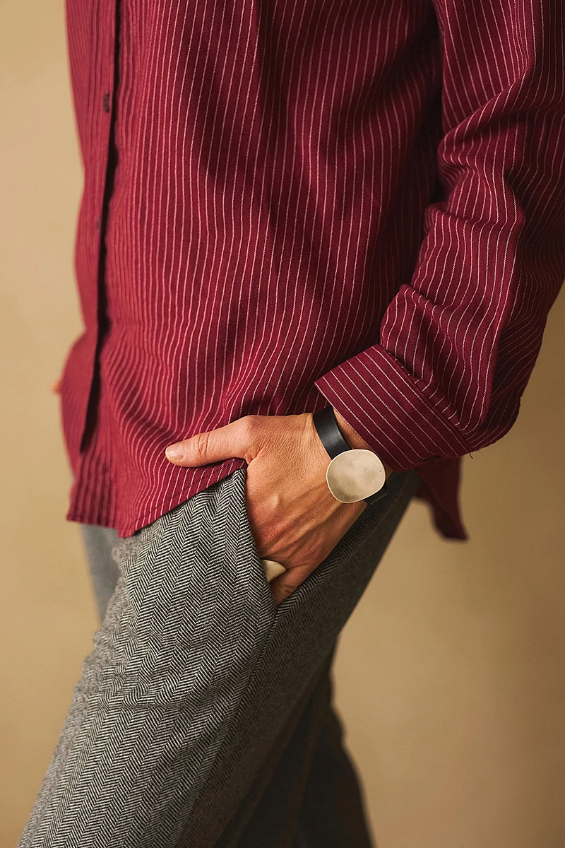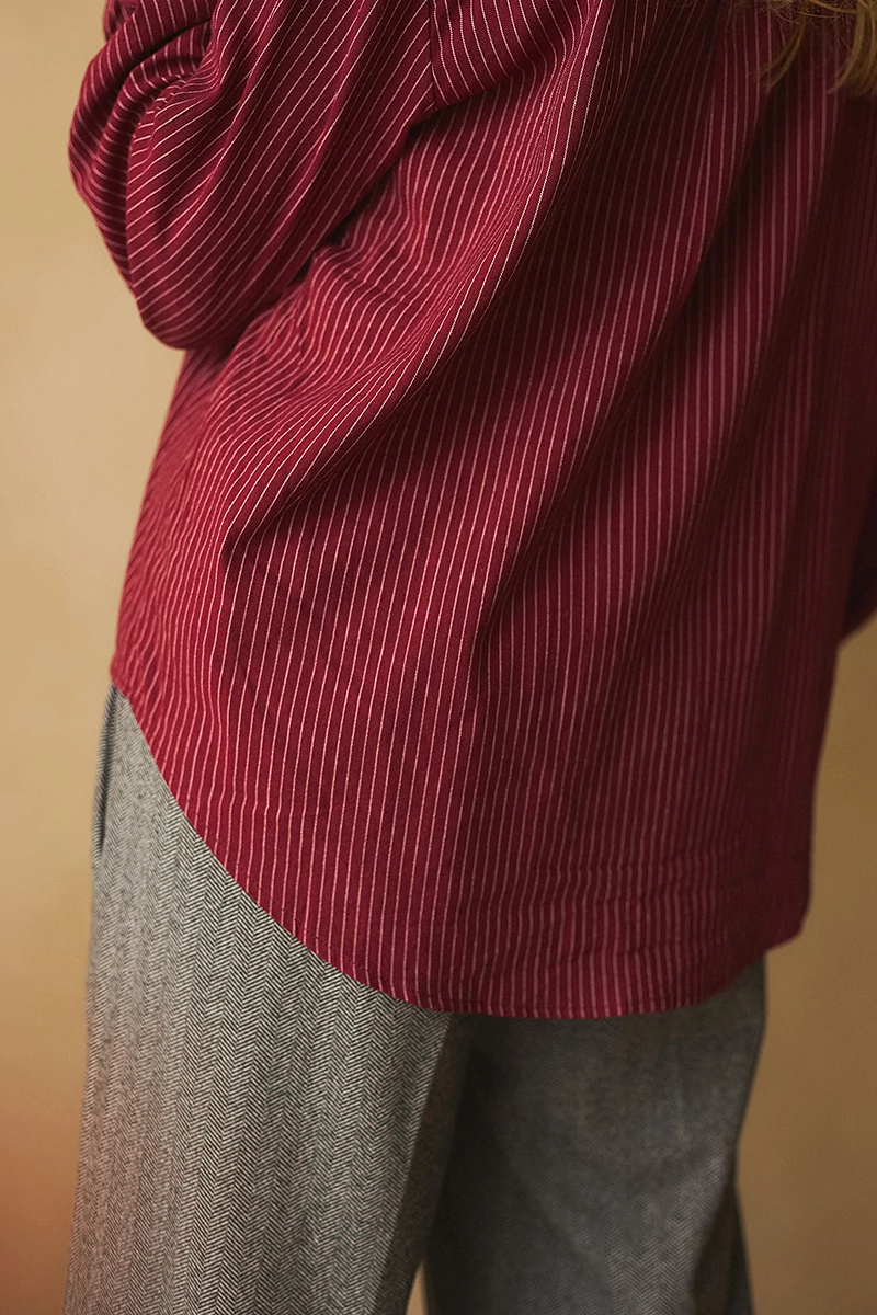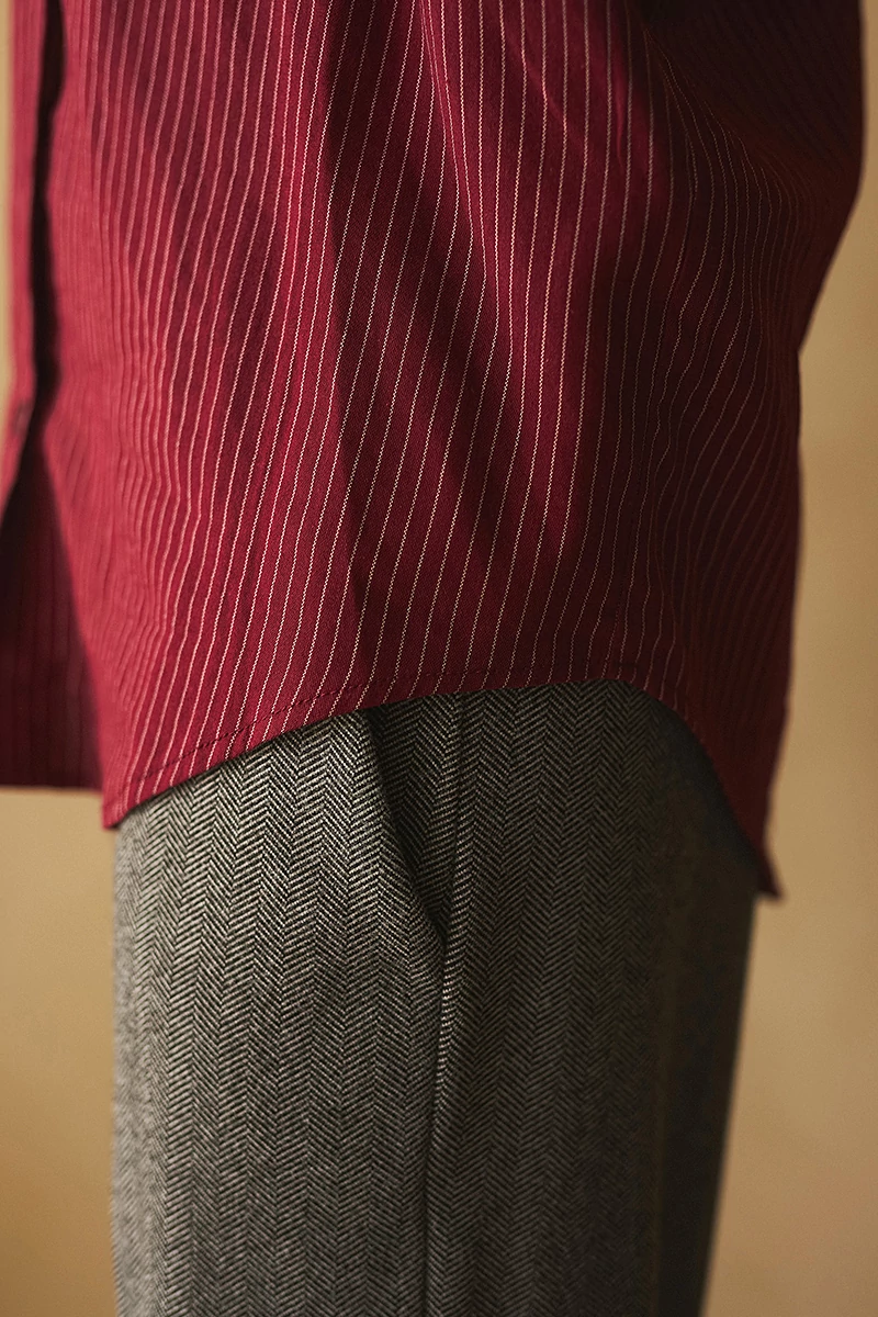 Lezser fazonú, egyenes vonalú, alján ívelt ing, hosszú, mandzsettás ujjal galléros nyakkal, elöl rgombolással, mellrésznél hímzéssel díszített. Az anyaga enyhén rusztikus pamutvászon.