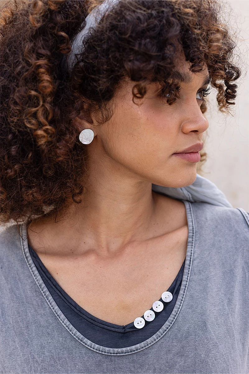 Ezüst színű, bedugós fülbevaló karcolásokkal. A termék színe ezüst.