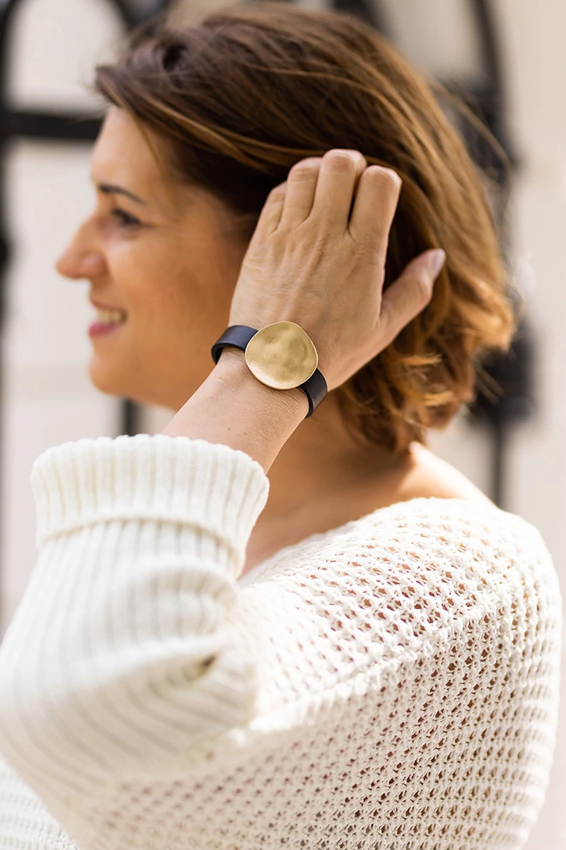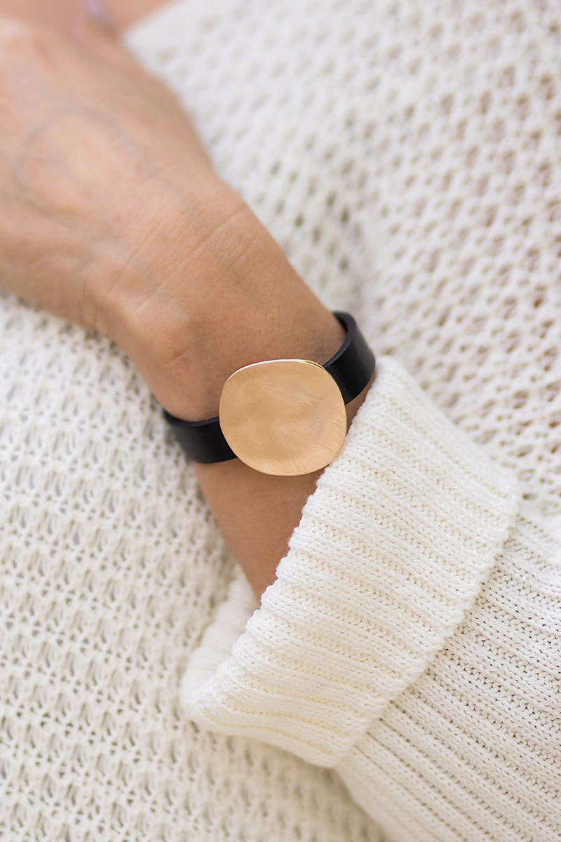 A medál átmérője 5 cm. A karkötő 20 cm átmérőjű, mágneses csattal záródik. A termék színe arany.