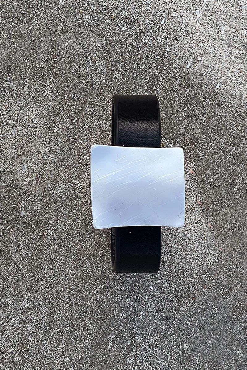 A négyzet ezüst színű, 20 cm a körvonala, mágneses csattal záródik.