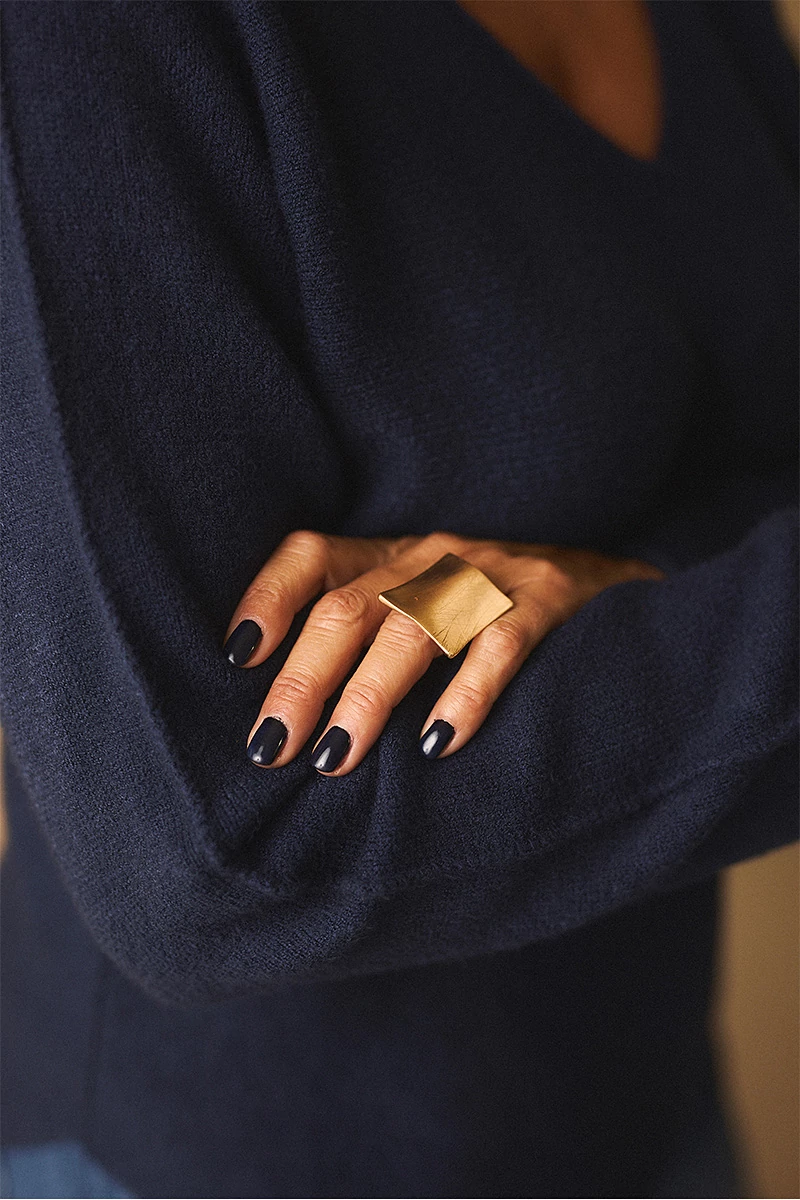 A gyűrű átmérője: 2 cm, de gumis, így nyúlik. A medál enyhén hullámos, az átlója: 3 cm. A termék színe arany.
