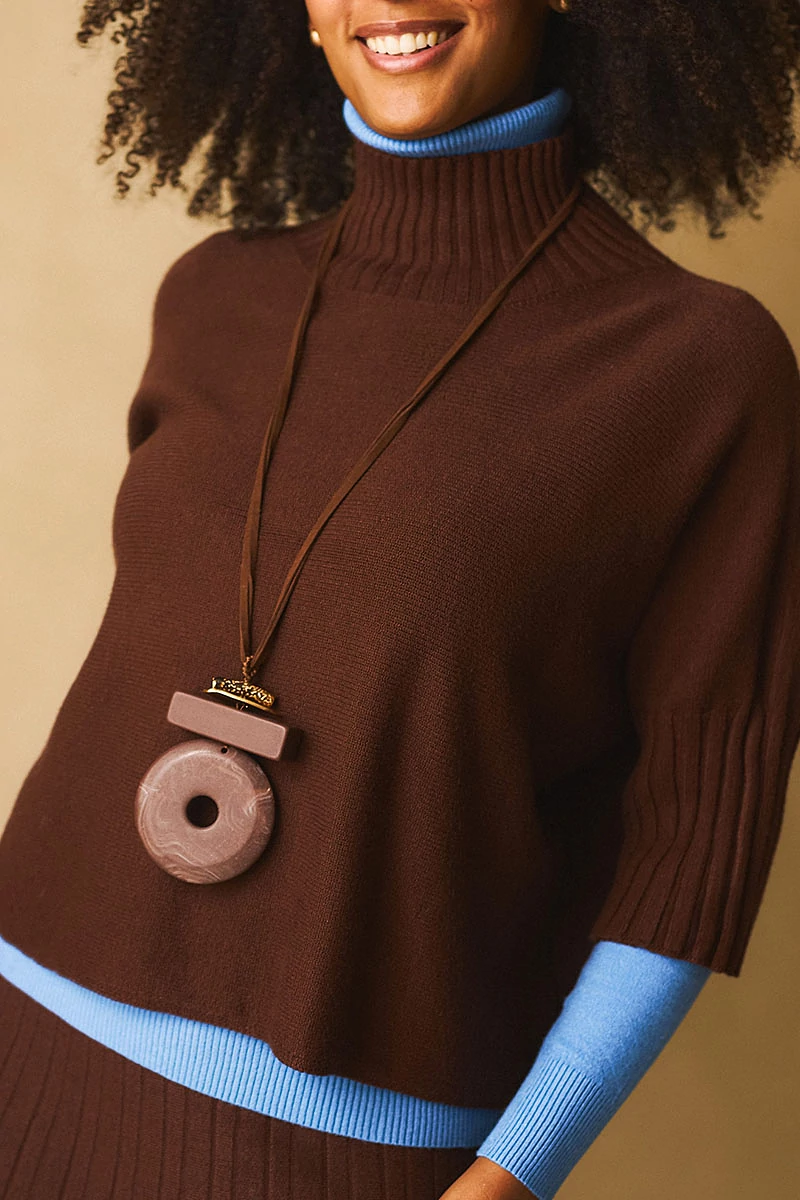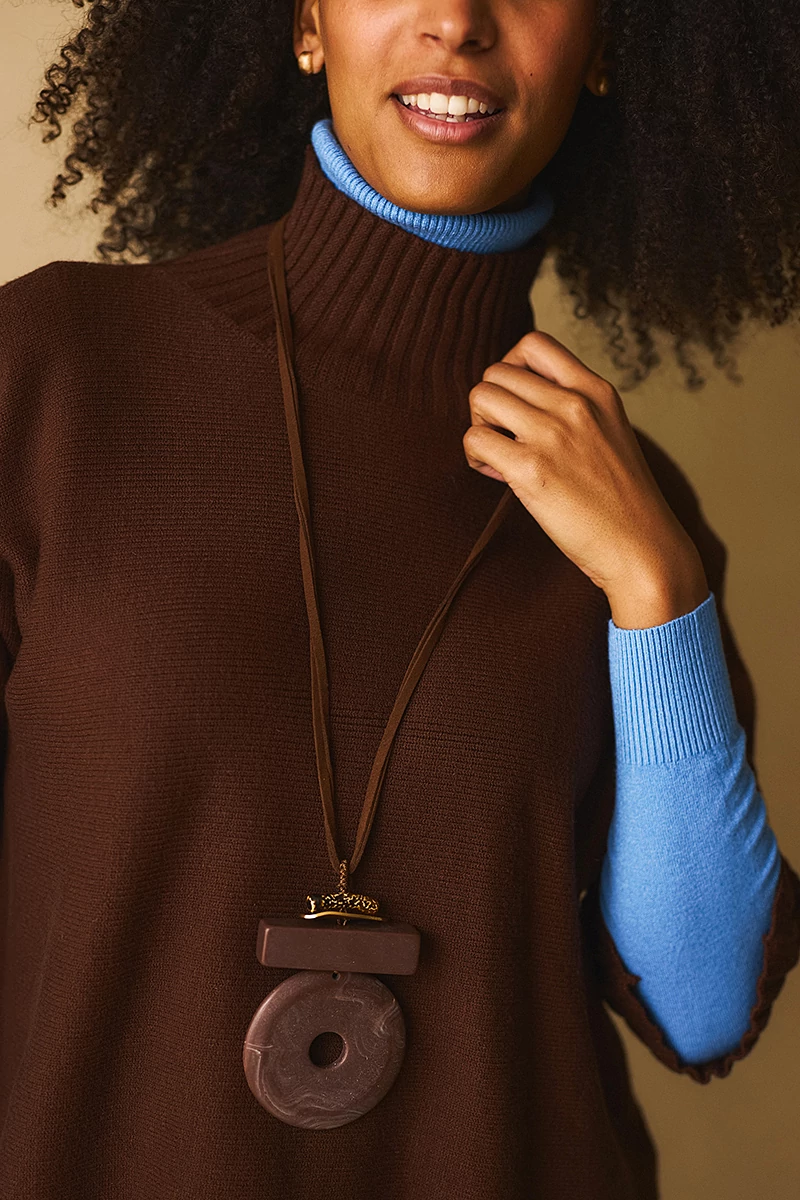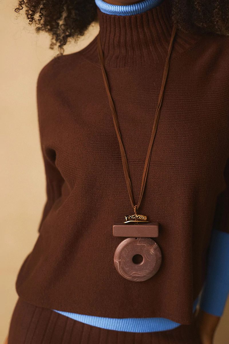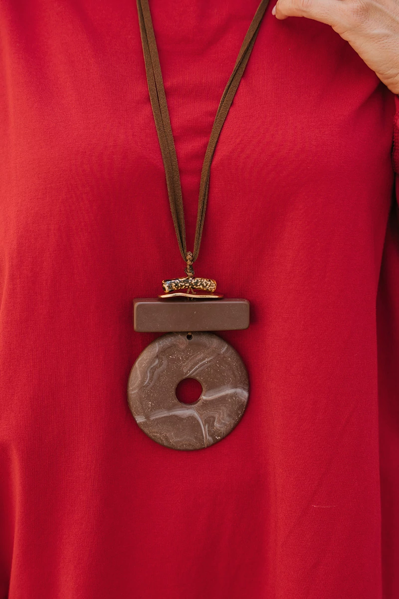 Állítható bőr nyaklánc nagyméretű, absztrakt medállal. A medál mintázata egyedi, eltérő erősségű lehet. Lánc hossza 55 cm, kör dísz átmérője 8 cm.