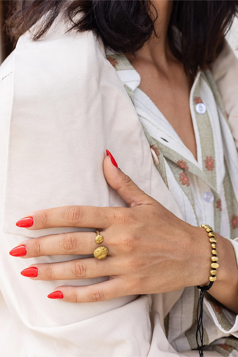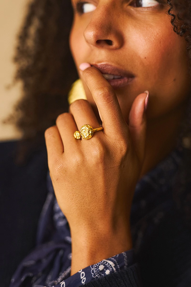 Kemény sárgaréz gyűrű, kézműves kézzel készített. Hipoallergén és rozsdamentes. Az ékszer különlegessége az egyedi kialakítás, forma és mintázat. Opálos fényű felület, kézműves hatás. Átmérő 17 mm (állítható)