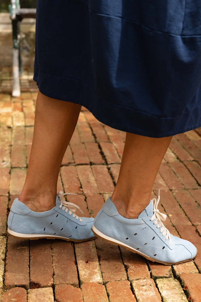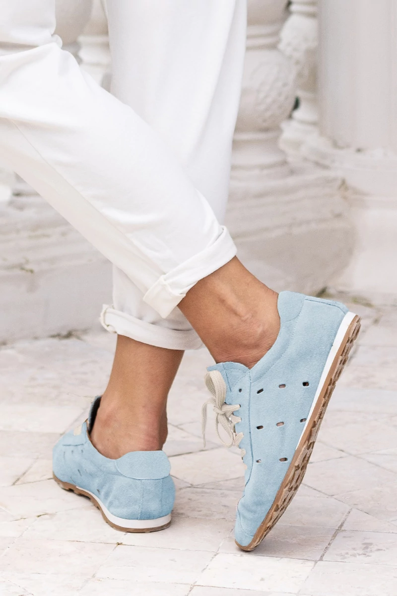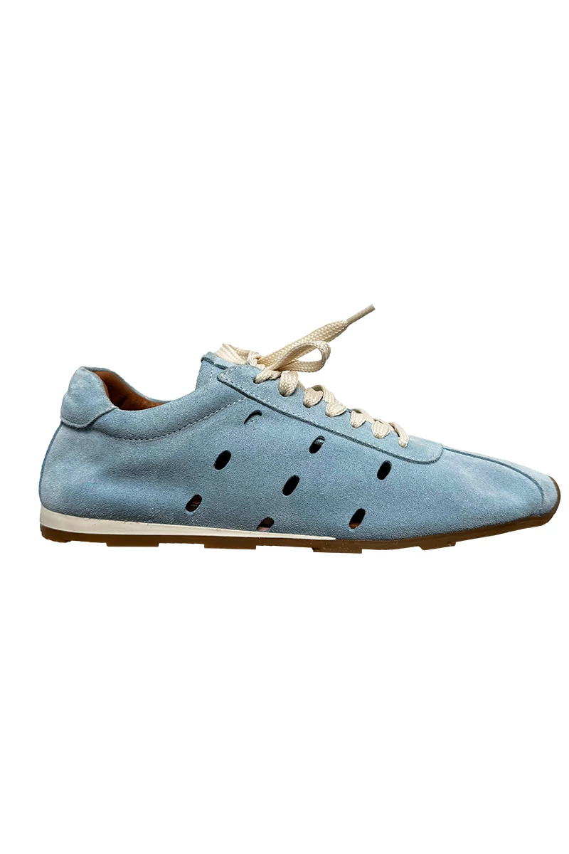Fűzős, hasított bőr cipő, bőr belsővel, kerek orral, oldalt lyukakkal, kiváló tapadást nyújtó, megerősített, lapos, előre nyúló profiltalppal, melynek rugalmassága elnyeli az ütéseket.