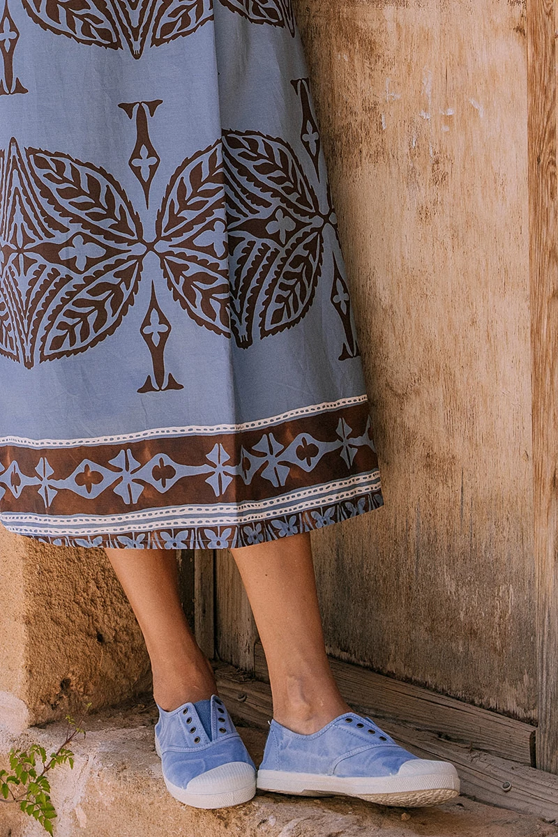 Koptatott vászon felsőrész, rugalmas, ragasztott gumi talp. A cipő talpa és a batikolt vászon felsőrész 100%-ban újrahasznosított anyag. A nyelve gumis, így akár cipőfűző nélkül is hordható. ​A cipőkből a szokásos méretednél eggyel nagyobbat ajánlunk neked. Figyeld a lecentizett adatokat!