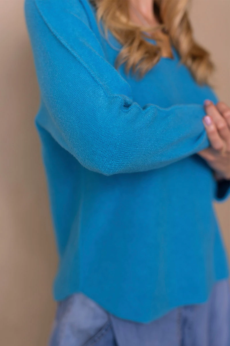 Lágy esésű, finom tapintású kötött felső, ami egyszerre kényelmes és nőies. A lezserebb fazon könnyed mozgást enged, miközben laza eleganciát sugall. Passzé nélküli végei szabadabb, játékosabb hatást keltenek, az ívelt nyakkivágás pedig kiemeli a nyak vonalát, így egyszerre sportosan természetes és finoman sikkes.