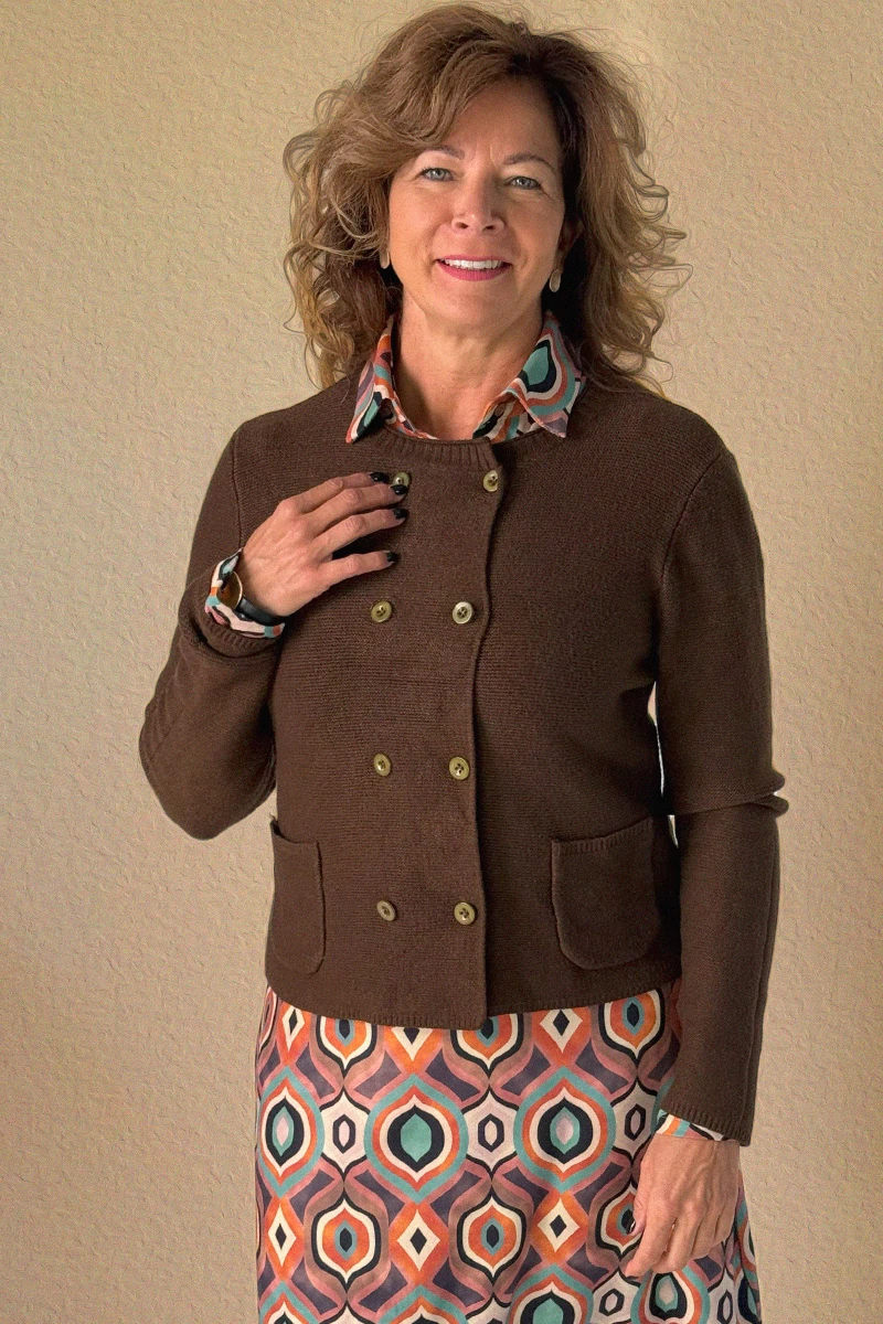 A szezon kedvencei a kötöttek, amelyekben jó lenni, mozogni, megélni a mindennapokat. A puha kötött kardigánunk anyaga enyhén bordázott, puha és rugalmas. Rendkívül kényelmes, rövidebb fazon kerek nyakkivágással, hosszú ujjal, elöl két rávarrt zsebbel, duplasoros gombolással.