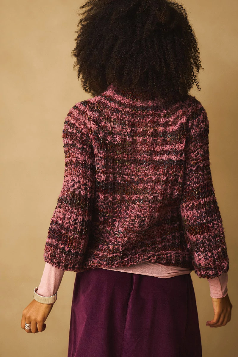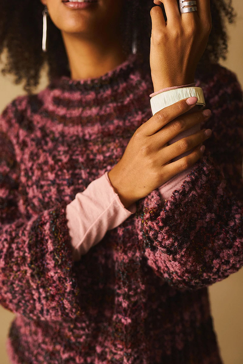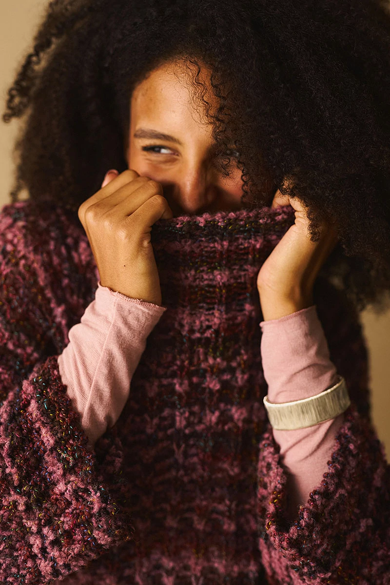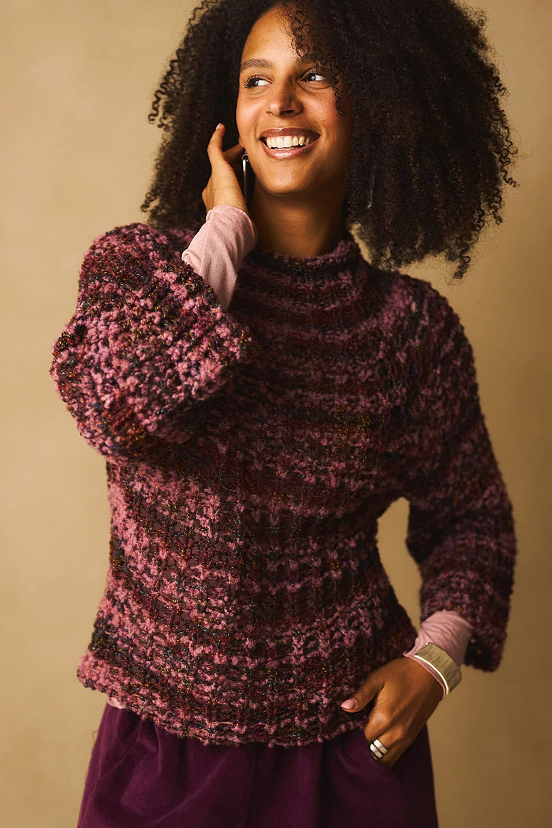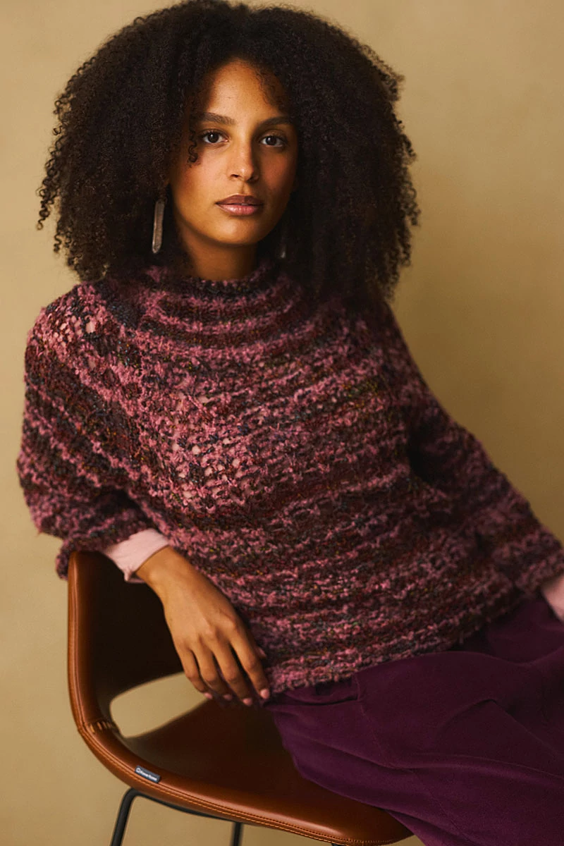 A lezserség és a finomság tökéletes egyensúlya. Rövidebb pulóver a kényelmes elegancia megtestesítője. Raglán szabású, bő ujj, félgarbós nyak, passzé nélküli, szabadon hagyott végek. Lazán hurkolt, színátmenetes, melírozott kötött anyaga puha tapintású és különleges textúrájú.
