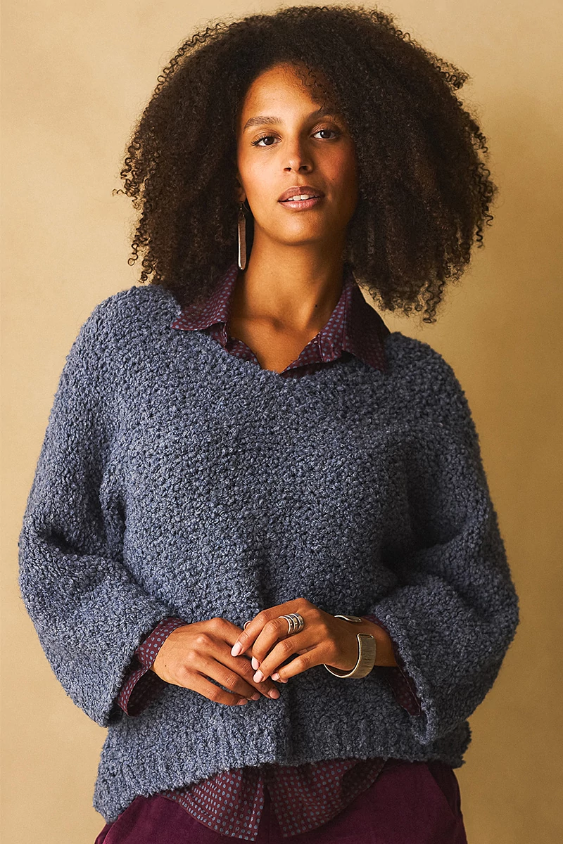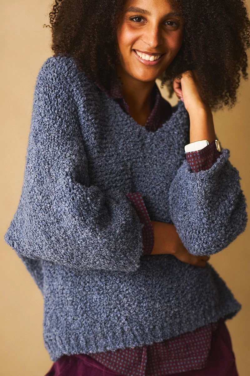 Színes buklé hangulat. Llezser fazonú buklé pulóver igazi kedvenc alapdarab lehet az őszi–téli szezonban. V nyakkivágása nőies és nyújtja a felsőtest vonalát, a laza szabás pedig kényelmes, könnyed viseletet biztosít a mindennapokban. A buklé anyag játékos textúrája egyedi karaktert ad, a pulóver pedig sokféle színben elérhető, így mindenki megtalálhatja a hangulatához és stílusához illőt. Kombináld farmerrel a lezser hétköznapokra, vagy szoknyával az elegánsabb alkalmakra.