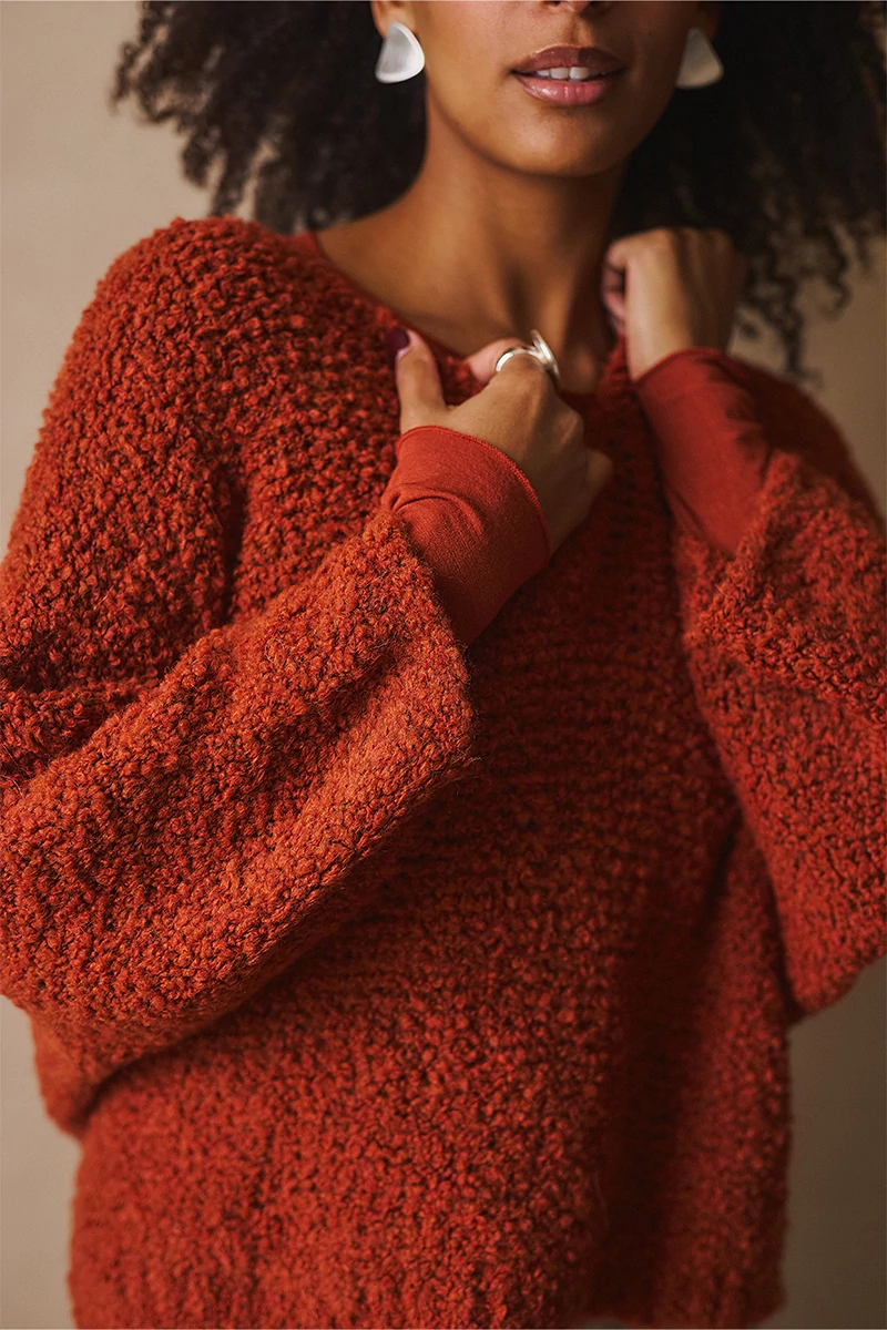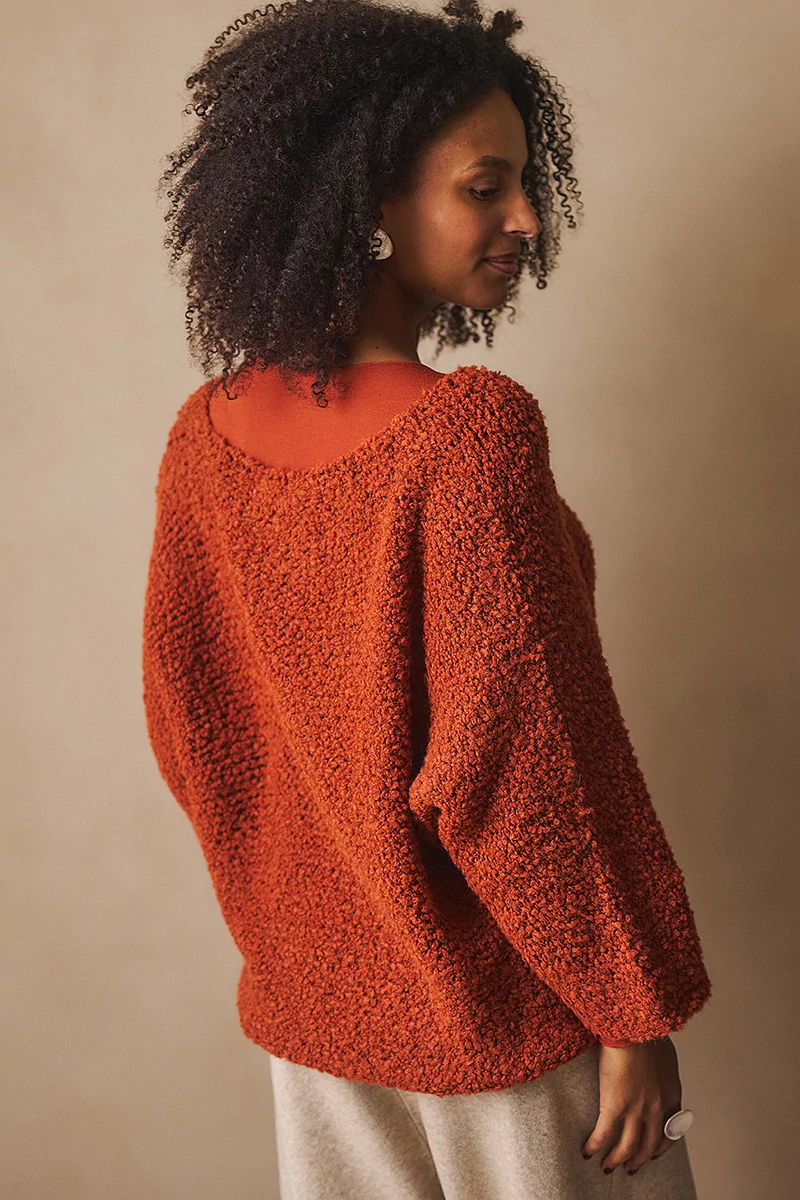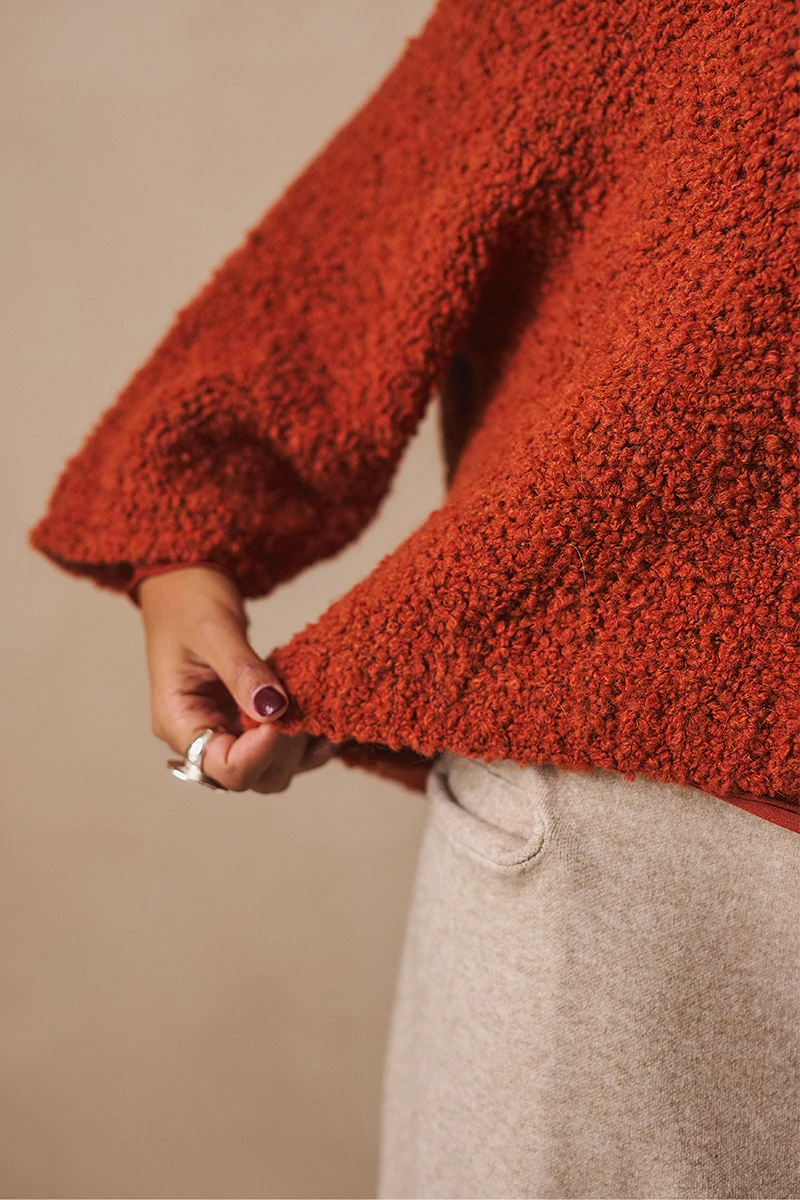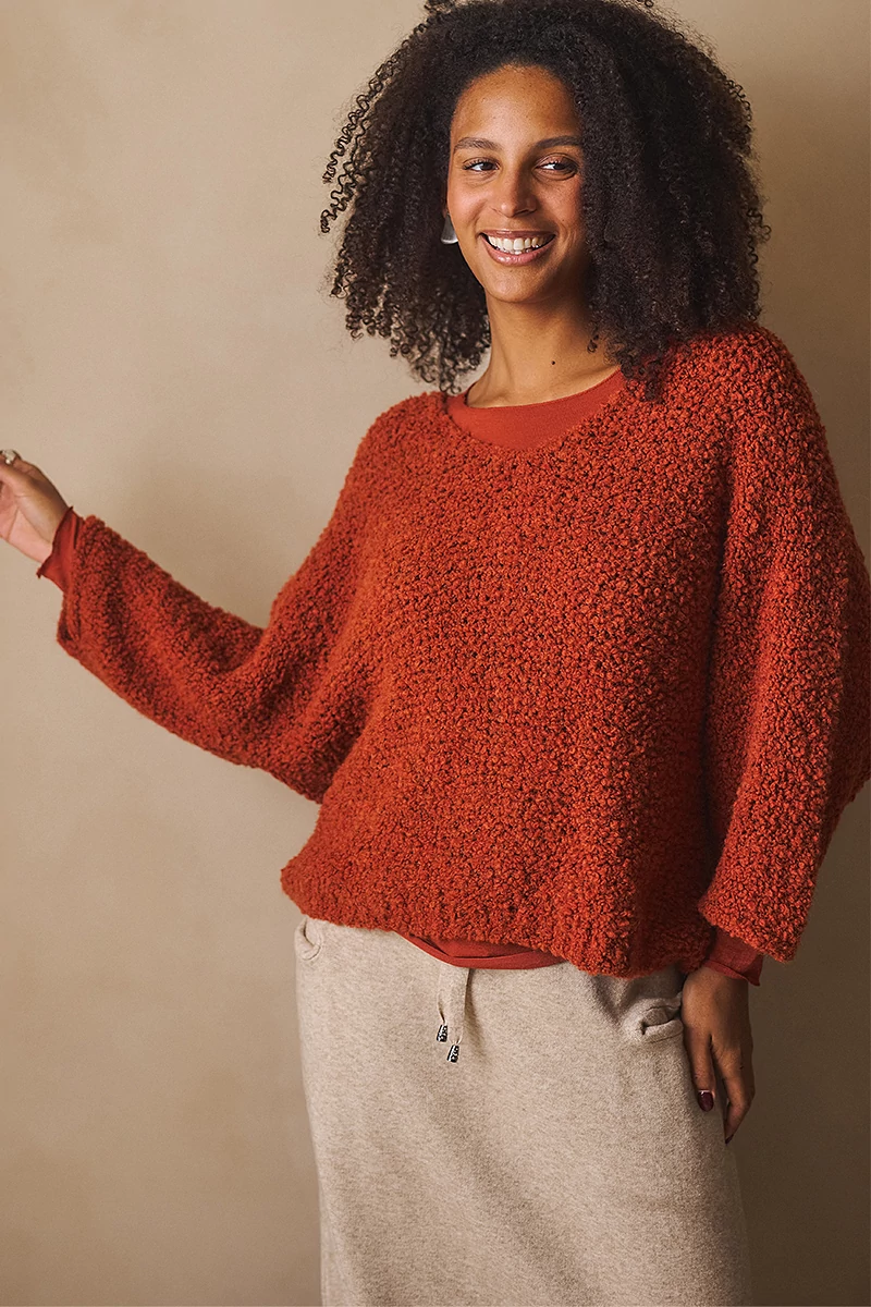 Színes buklé hangulat. Lezser fazonú buklé pulóver igazi kedvenc alapdarab lehet az őszi–téli szezonban. V nyakkivágása nőies és nyújtja a felsőtest vonalát, a laza szabás pedig kényelmes, könnyed viseletet biztosít a mindennapokban. A buklé anyag játékos textúrája egyedi karaktert ad, a pulóver pedig sokféle színben elérhető, így mindenki megtalálhatja a hangulatához és stílusához illőt. Kombináld farmerrel a lezser hétköznapokra, vagy szoknyával az elegánsabb alkalmakra.