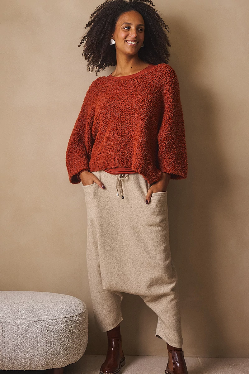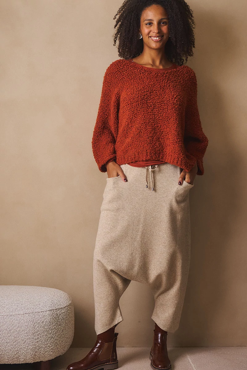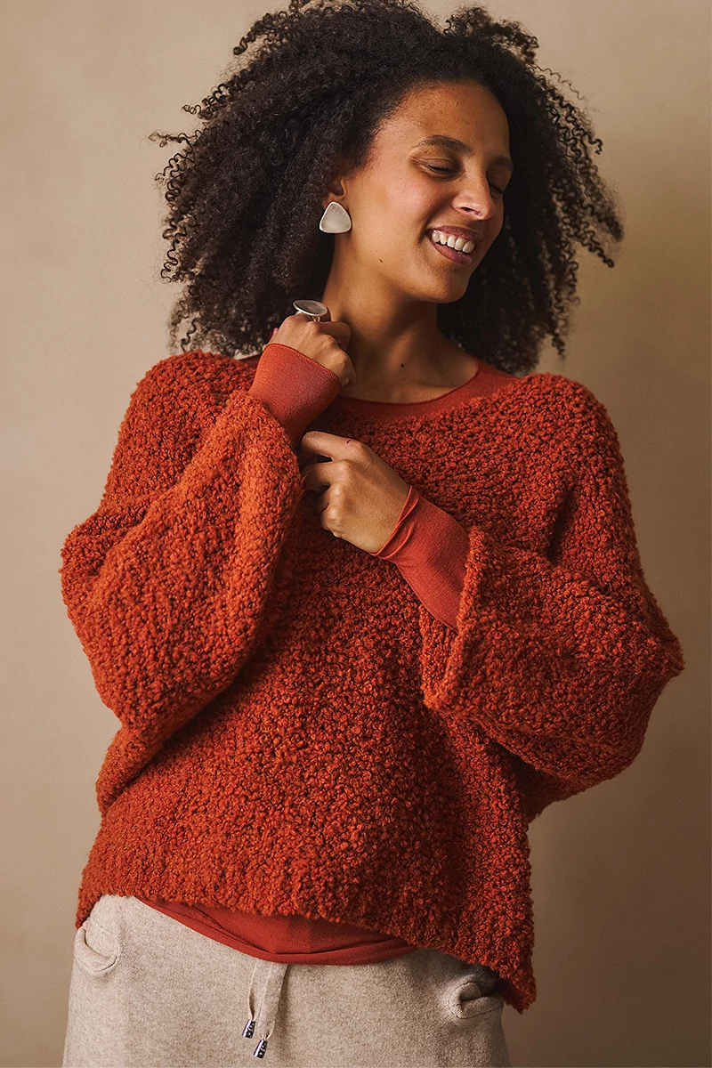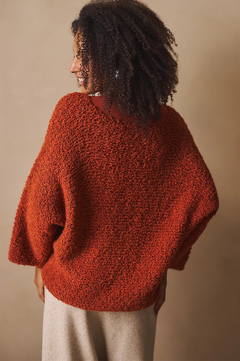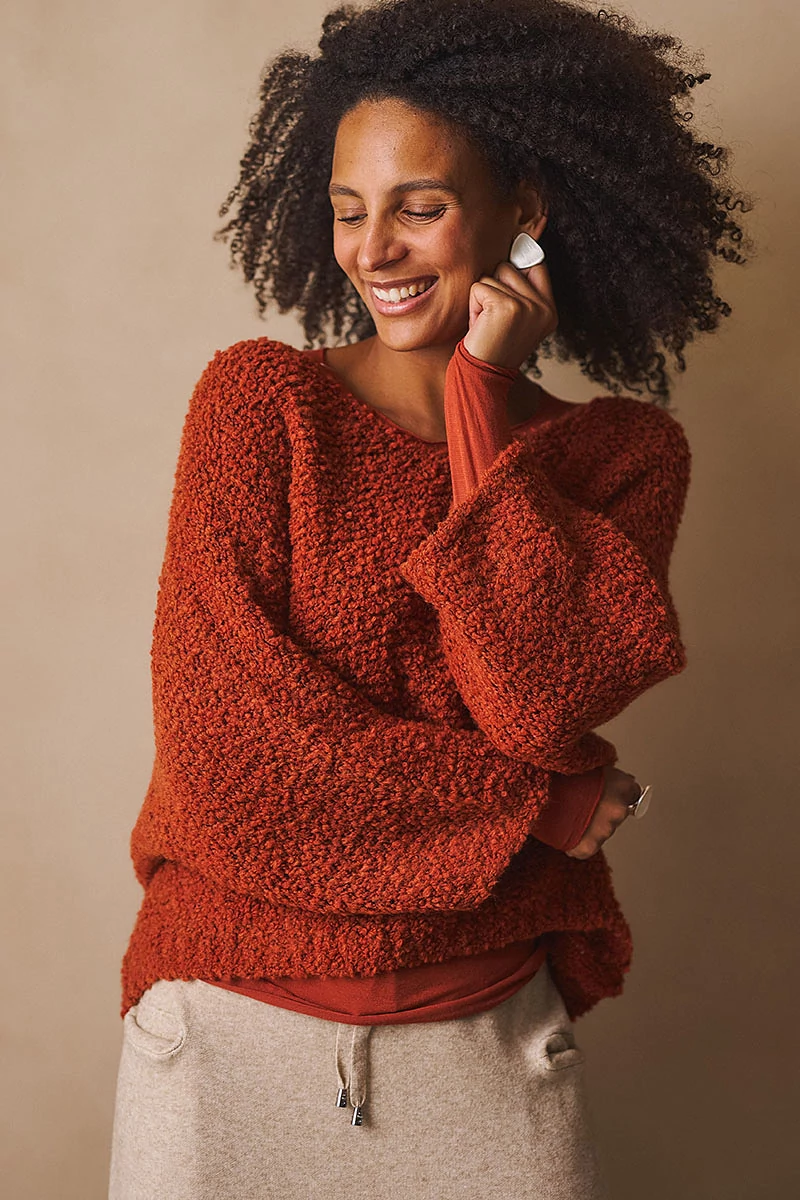 Színes buklé hangulat. Lezser fazonú buklé pulóver igazi kedvenc alapdarab lehet az őszi–téli szezonban. V nyakkivágása nőies és nyújtja a felsőtest vonalát, a laza szabás pedig kényelmes, könnyed viseletet biztosít a mindennapokban. A buklé anyag játékos textúrája egyedi karaktert ad, a pulóver pedig sokféle színben elérhető, így mindenki megtalálhatja a hangulatához és stílusához illőt. Kombináld farmerrel a lezser hétköznapokra, vagy szoknyával az elegánsabb alkalmakra.