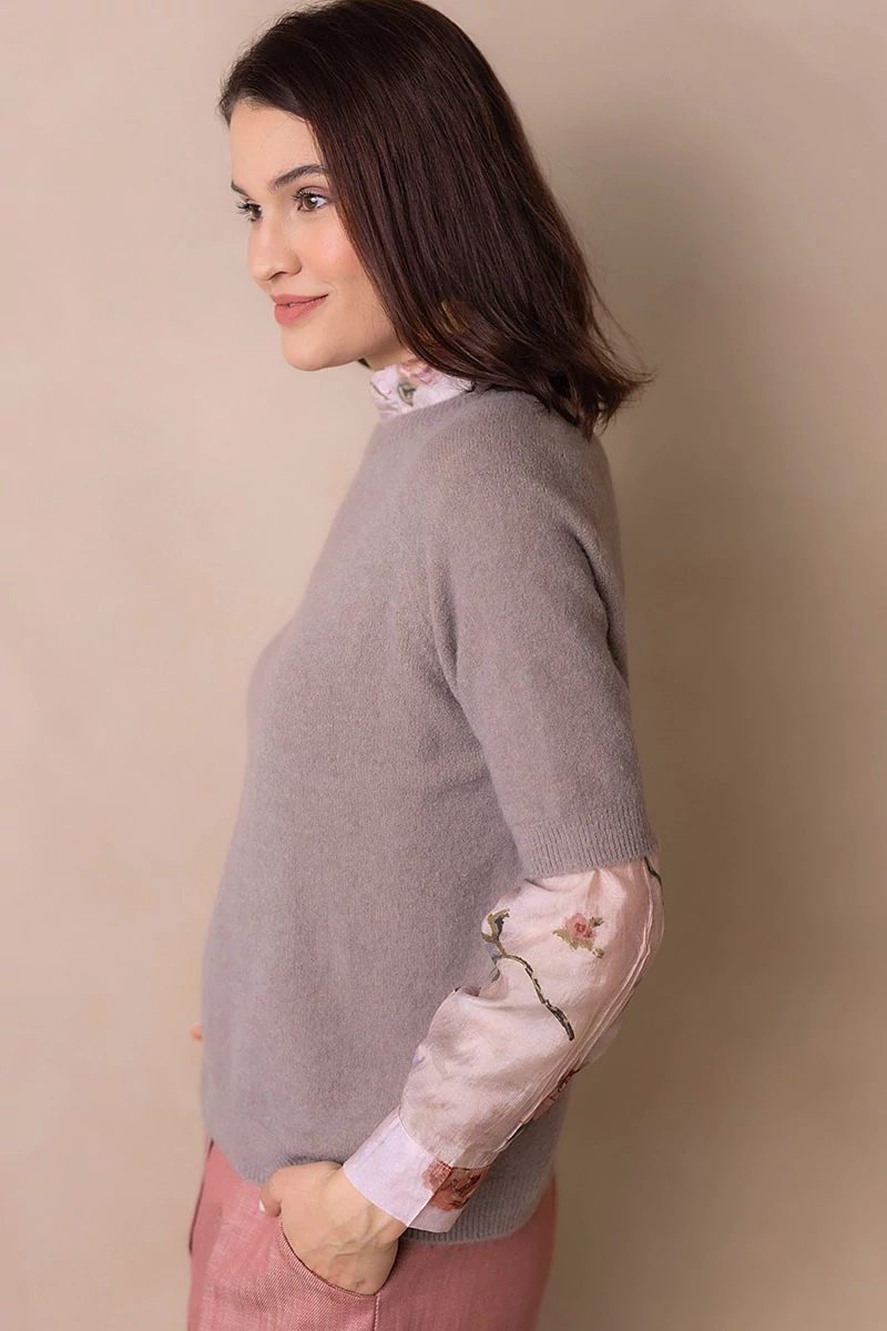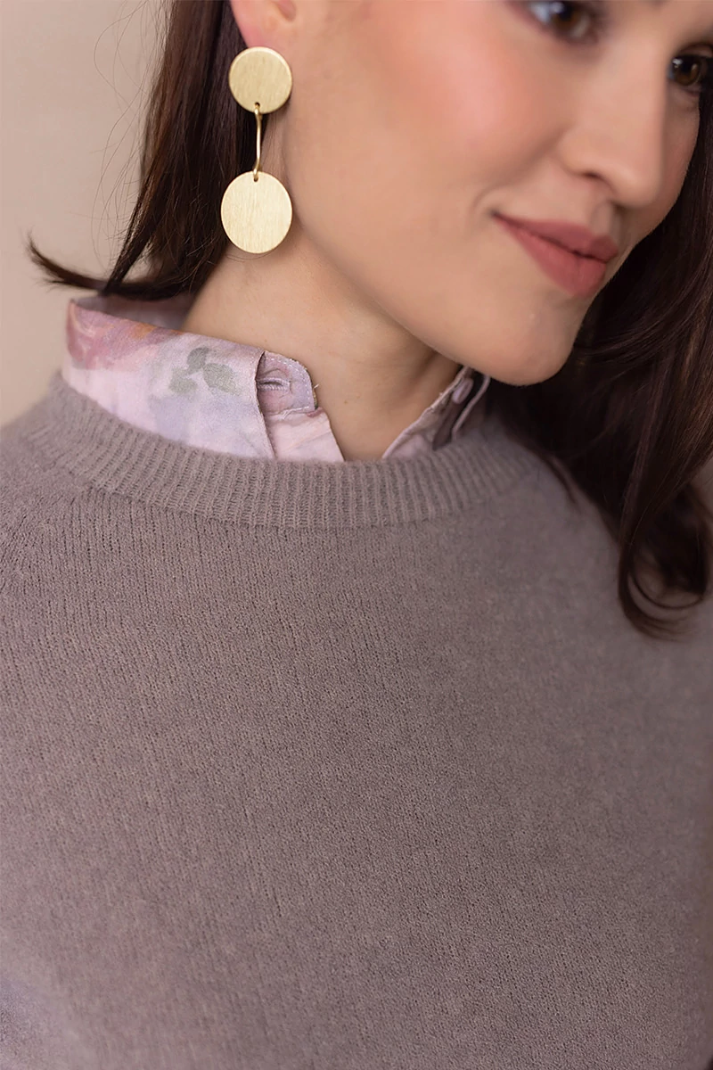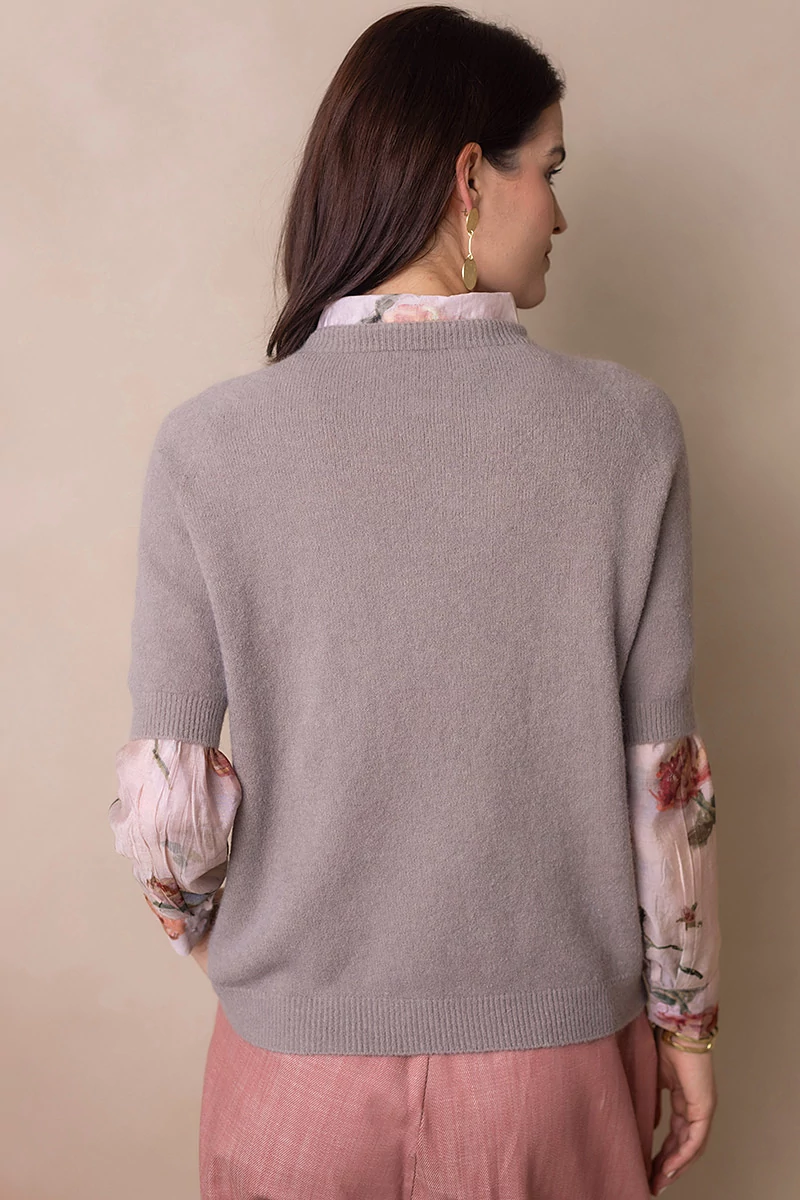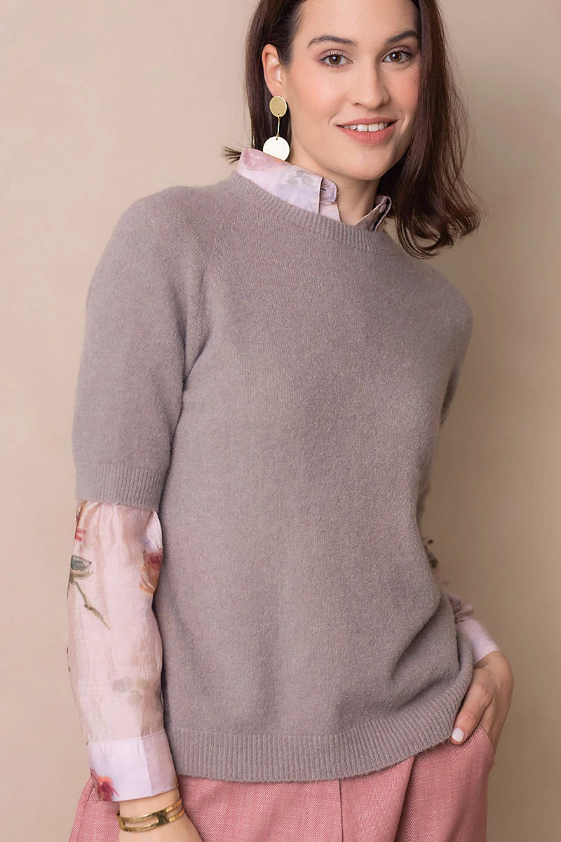 Lágy esésű, finom tapintású kötött felső, ami egyszerre kényelmes és nőies.A passzés, rövid raglán ujj könnyed mozgást enged, és laza eleganciát sugall. Egyszerre sportosan természetes és finoman sikkes.