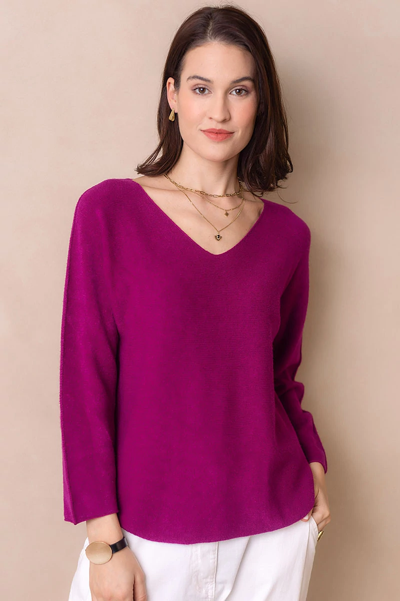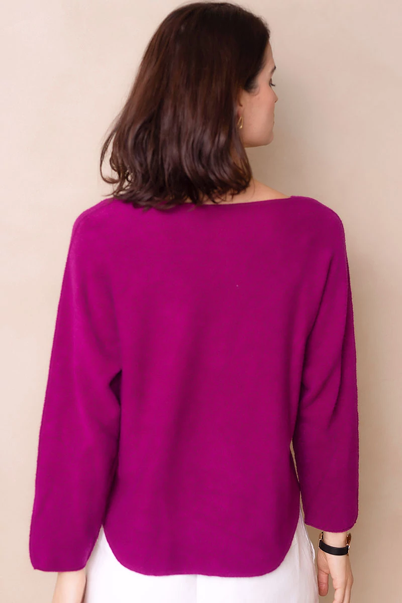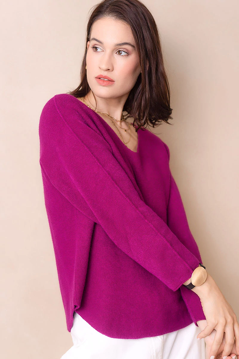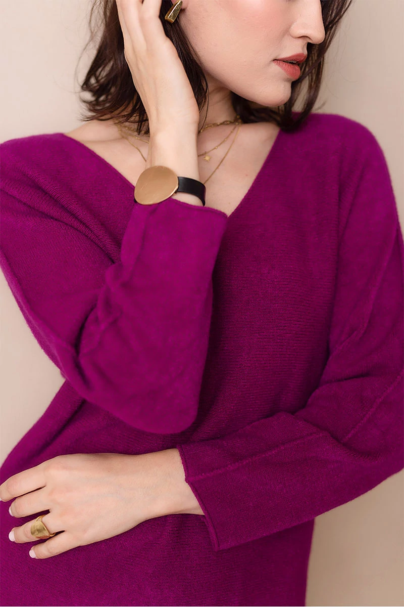 Lágy esésű, finom tapintású kötött felső, ami egyszerre kényelmes és nőies. A lezserebb fazon könnyed mozgást enged, miközben laza eleganciát sugall. Passzé nélküli végei szabadabb, játékosabb hatást keltenek, az ívelt nyakkivágás pedig kiemeli a nyak vonalát, így egyszerre sportosan természetes és finoman sikkes.