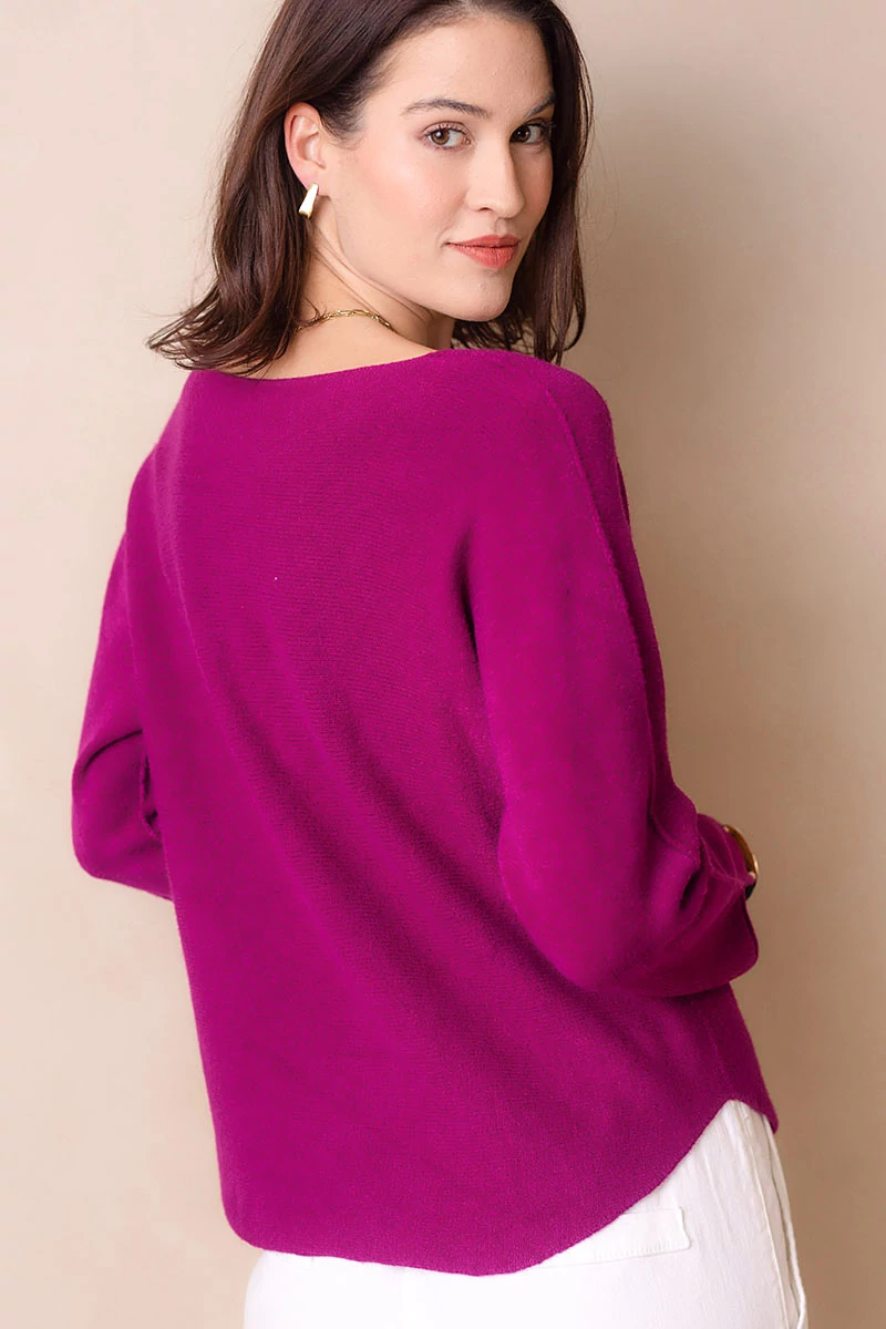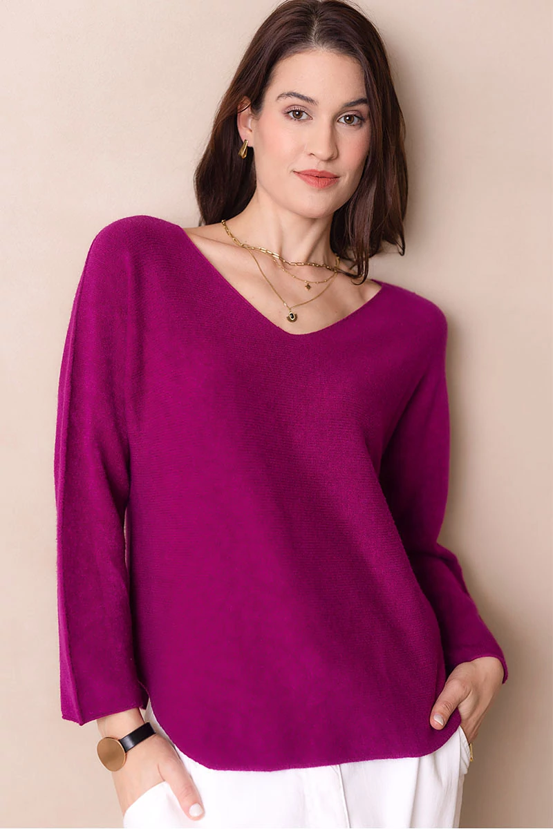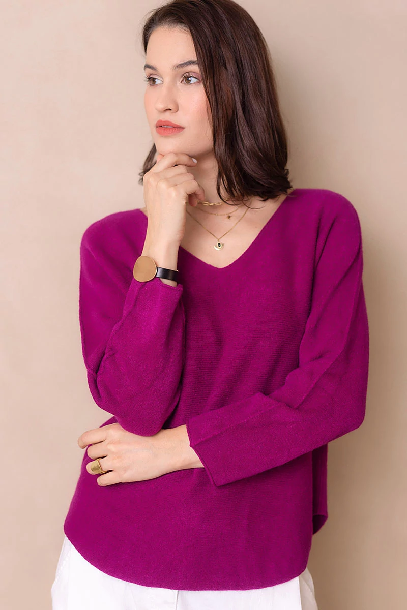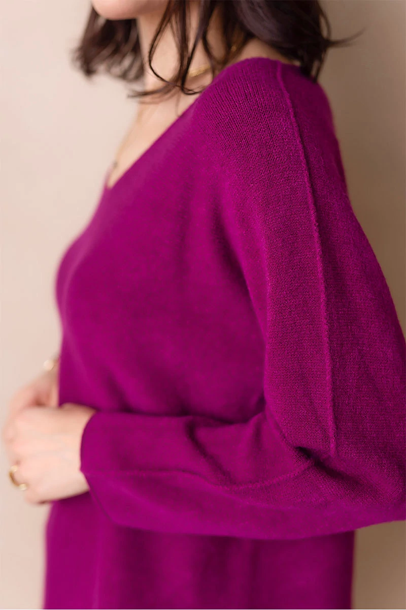 Lágy esésű, finom tapintású kötött felső, ami egyszerre kényelmes és nőies. A lezserebb fazon könnyed mozgást enged, miközben laza eleganciát sugall. Passzé nélküli végei szabadabb, játékosabb hatást keltenek, az ívelt nyakkivágás pedig kiemeli a nyak vonalát, így egyszerre sportosan természetes és finoman sikkes.