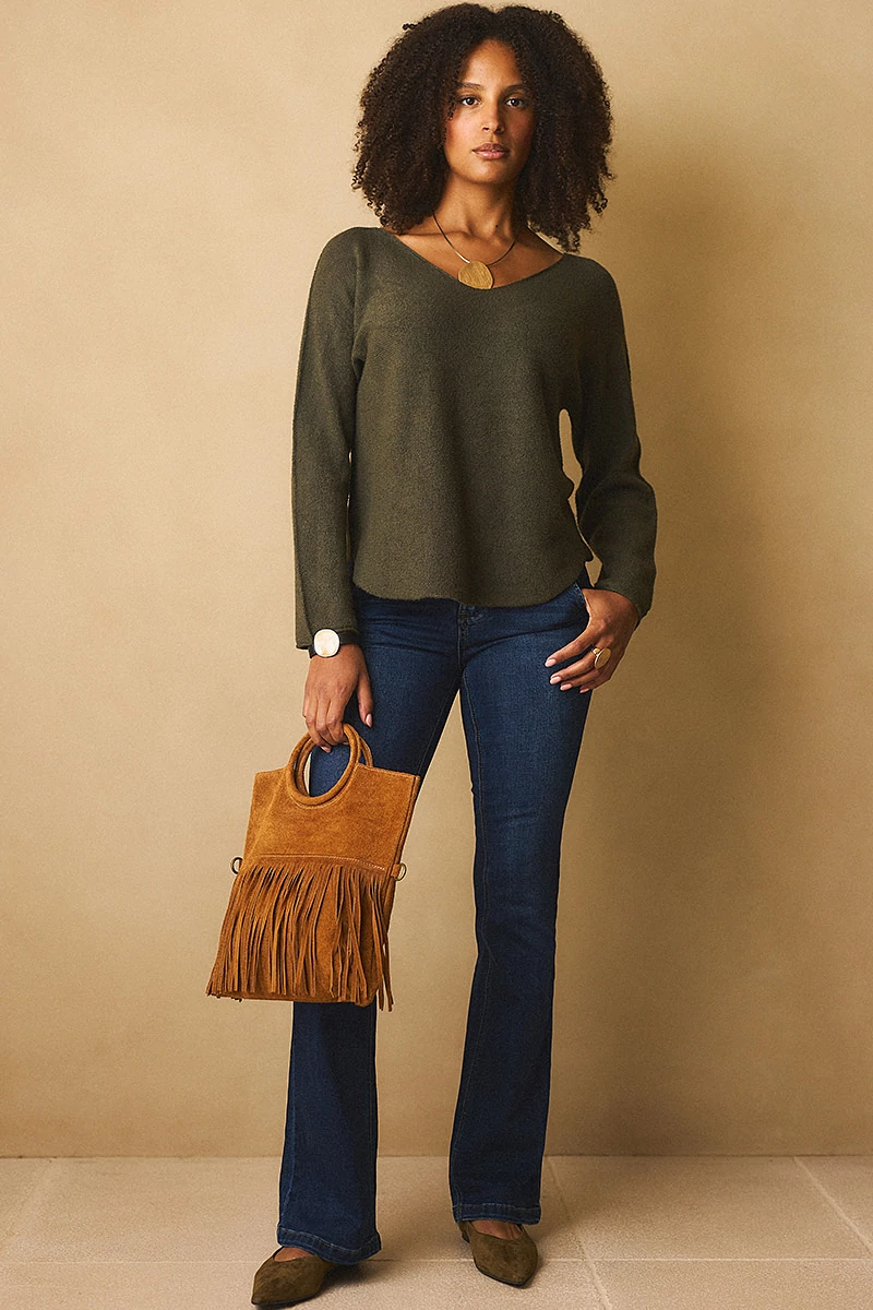 Lágy esésű, finom tapintású kötött felső, ami egyszerre kényelmes és nőies. A lezserebb fazon könnyed mozgást enged, miközben laza eleganciát sugall. Passzé nélküli végei szabadabb, játékosabb hatást keltenek, az ívelt nyakkivágás pedig kiemeli a nyak vonalát, így egyszerre sportosan természetes és finoman sikkes. A szezon legszebb színeiben ragyogó árnyalatok, amelyek azonnal feldobják a szürkébb napokat is.