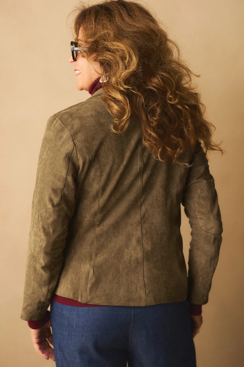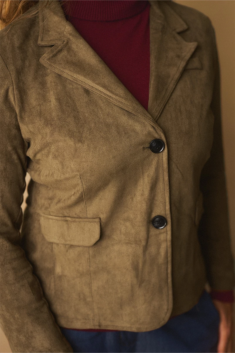 Minden szettet nőiesebbé tesz a blézer viselése. Düftin blézerünk jól variálható, enyhén karcsúsított testkövető fazon, szűkítő varrásokkal, hajtókás álzsebekkel. Hosszú ujjú, könyökvédő folttal díszített. Anyaga puha, velúr hatású, rugalmas szövet. Béleletlen.