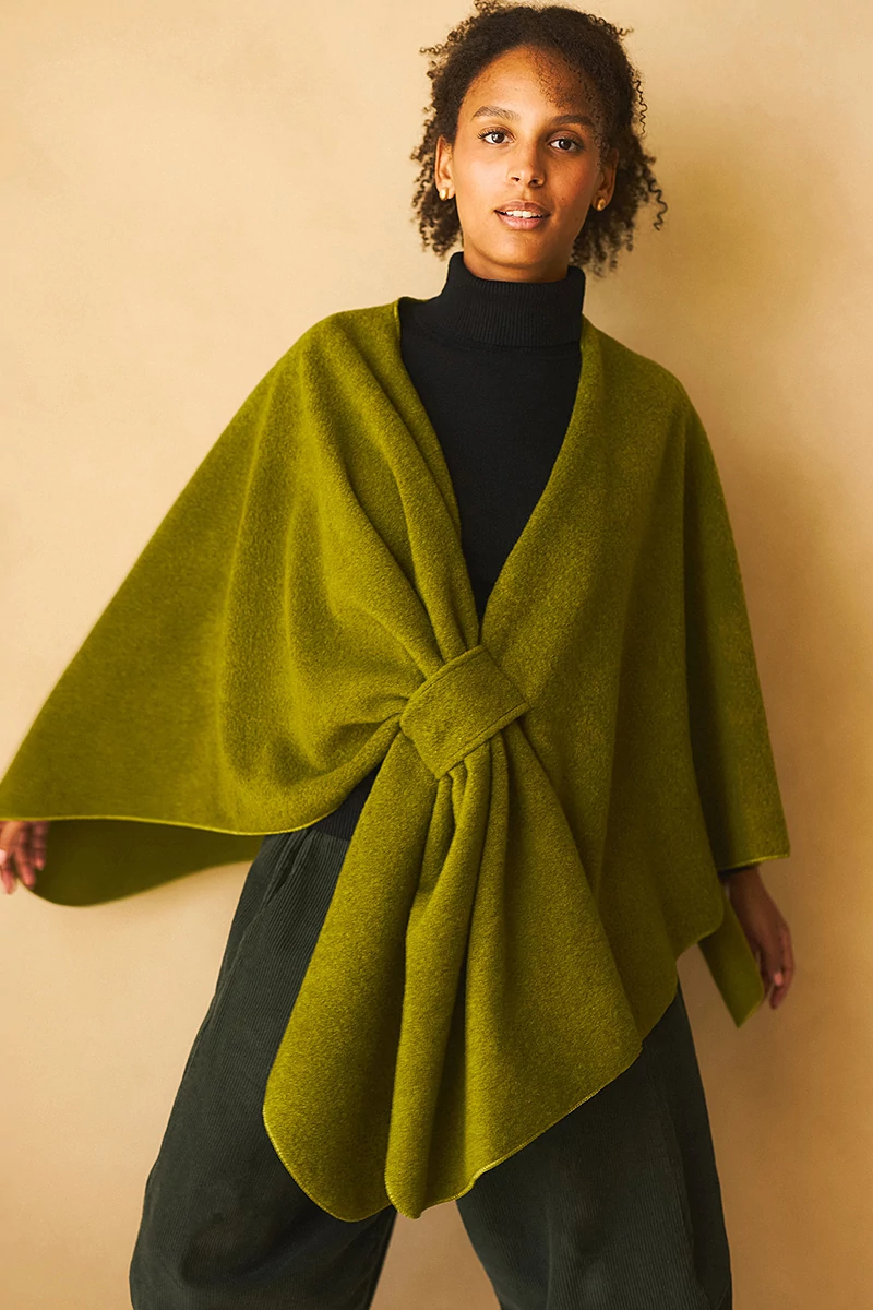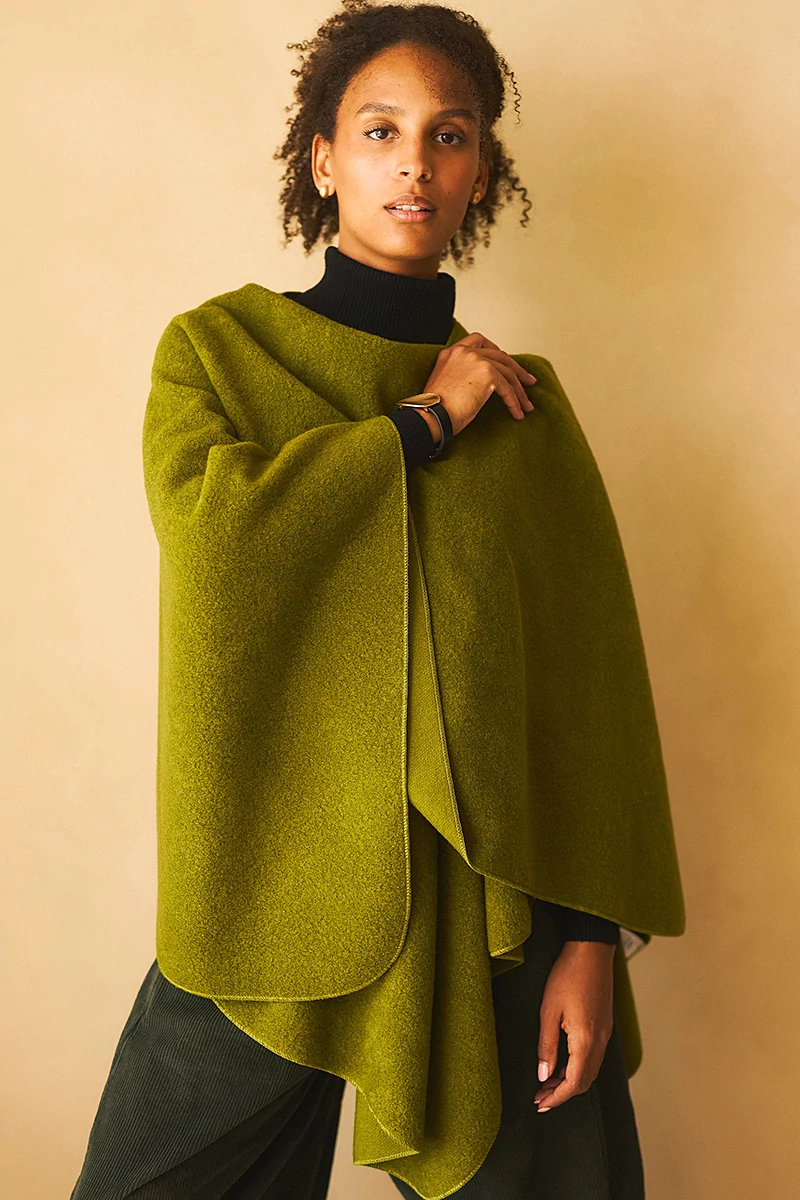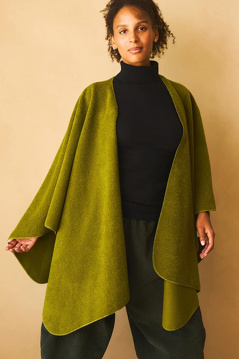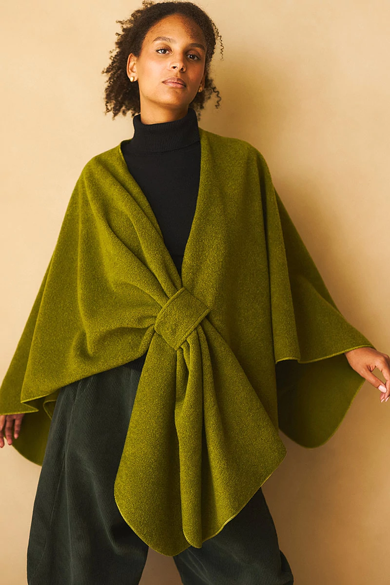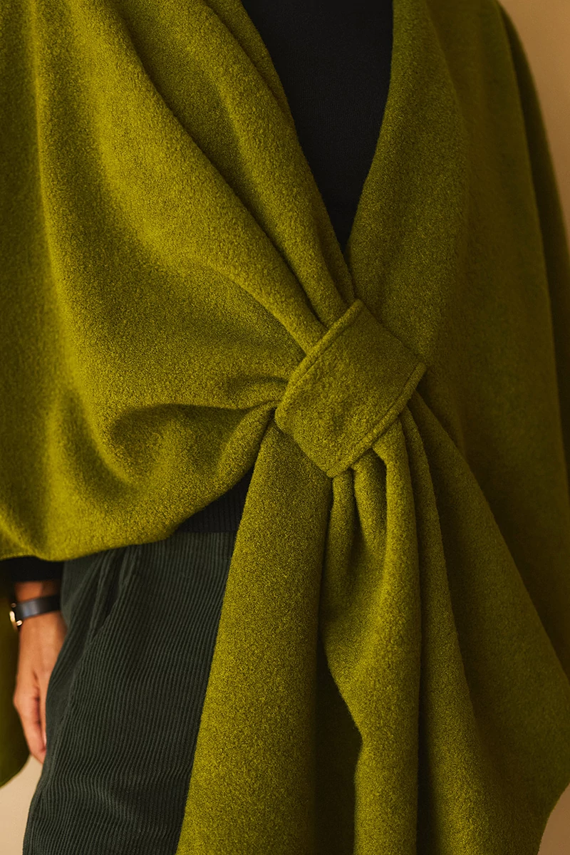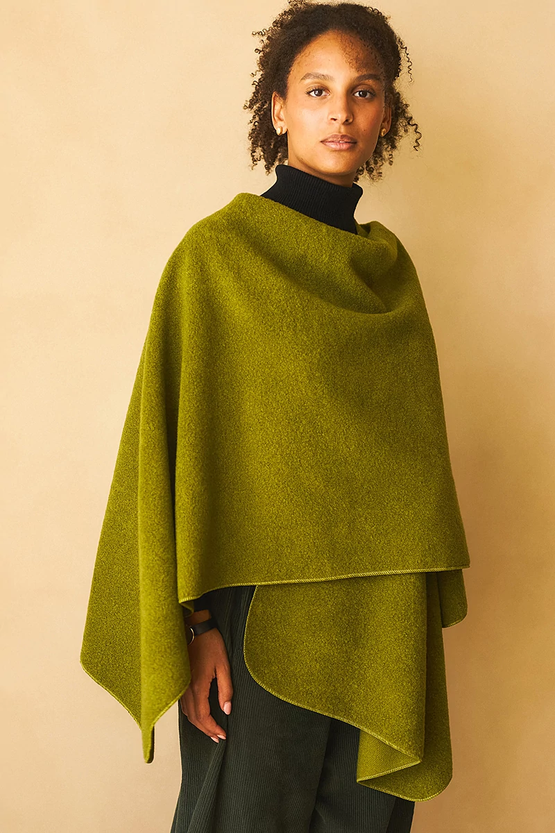 Széles, téglalap poncsó meleg, poláros anyagból. Többféleképen variálható. Elöl bújtatón átfűzve is rögzíthető.
