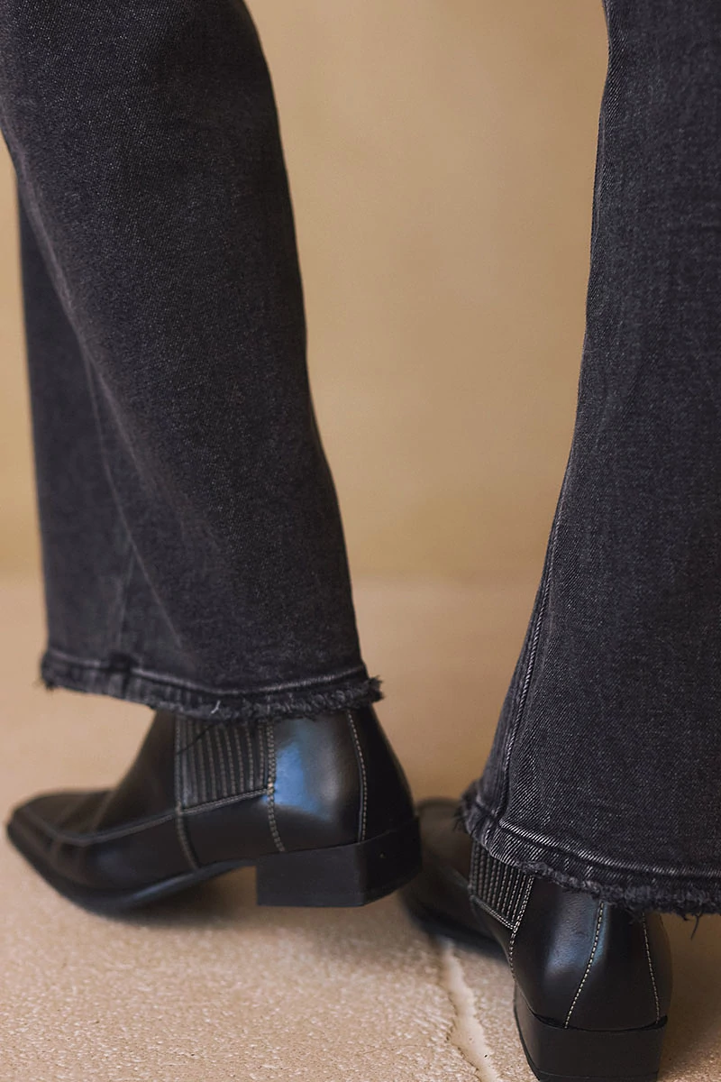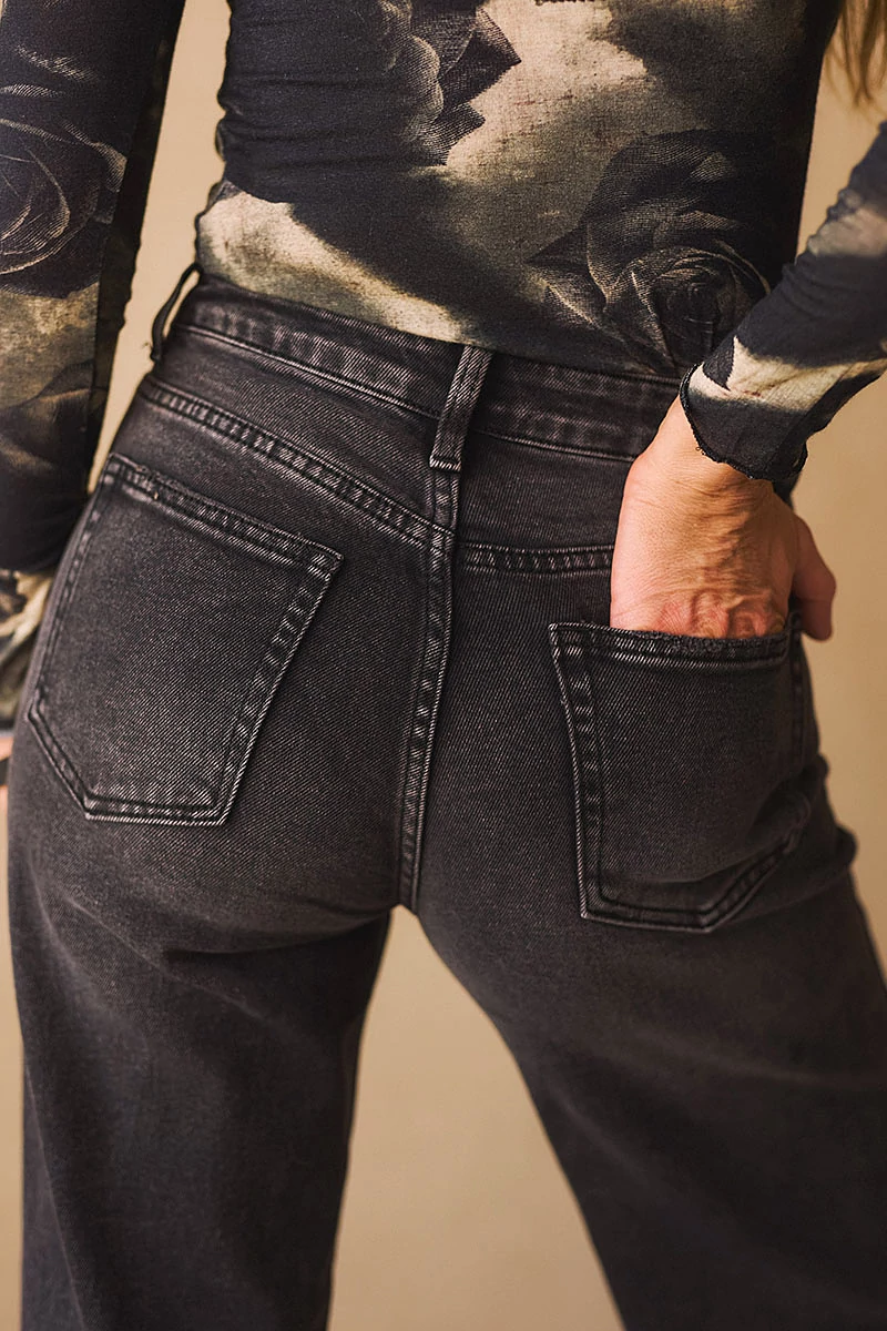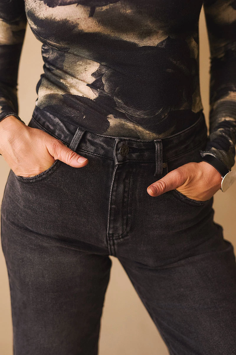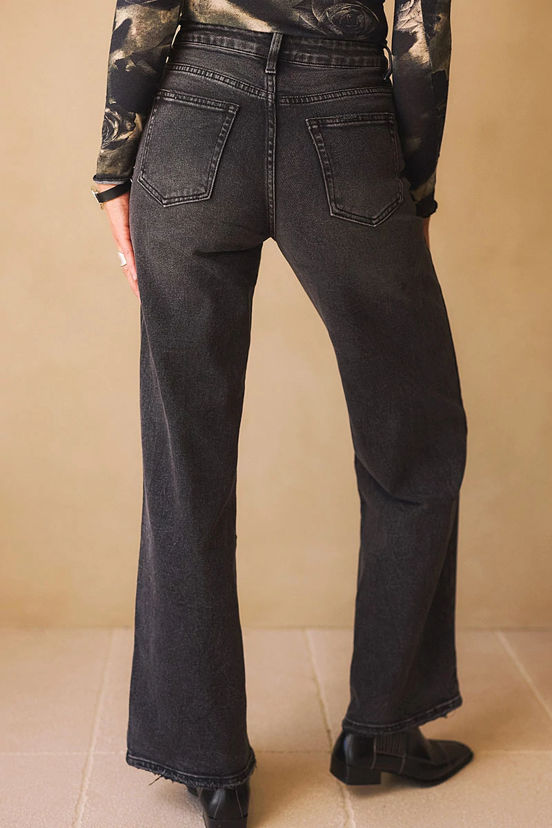 Magasabb derékrészű, egyenes szárú farmernadrág a klasszikus vonalakat ötvözi a modern kényelemmel. Bő, az alján rojtozott szára lazán követi a test vonalát, így elegáns és lezser összeállításokban is jól működik. Klasszikus 5 zsebes fazon. Cipzáras és gombos záródása kényelmes viseletet biztosít, míg a koptatott, rugalmas farmeranyag egyszerre ad karaktert és komfortot.