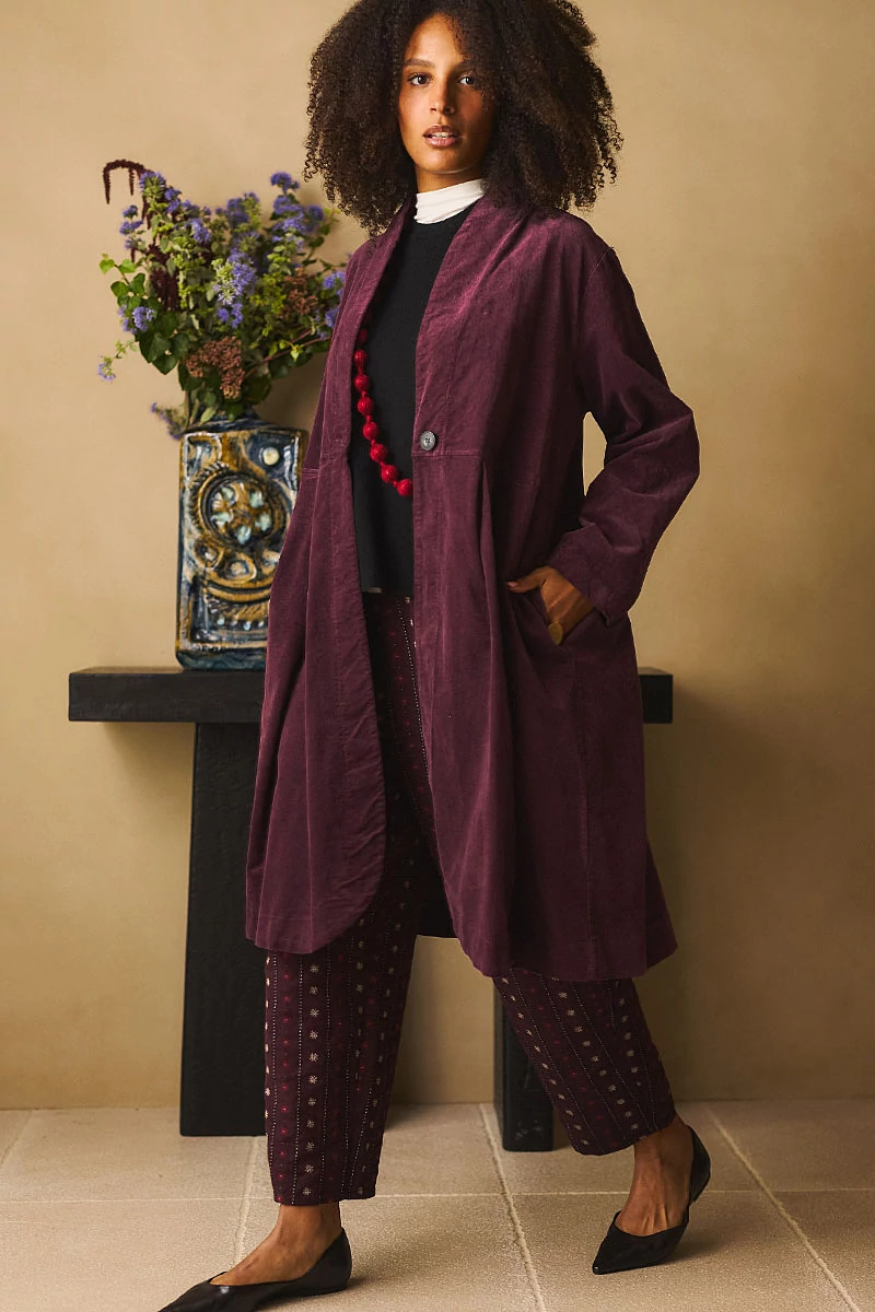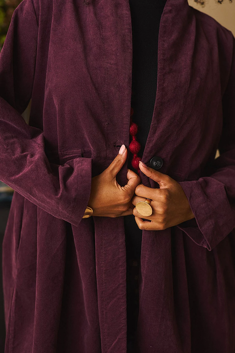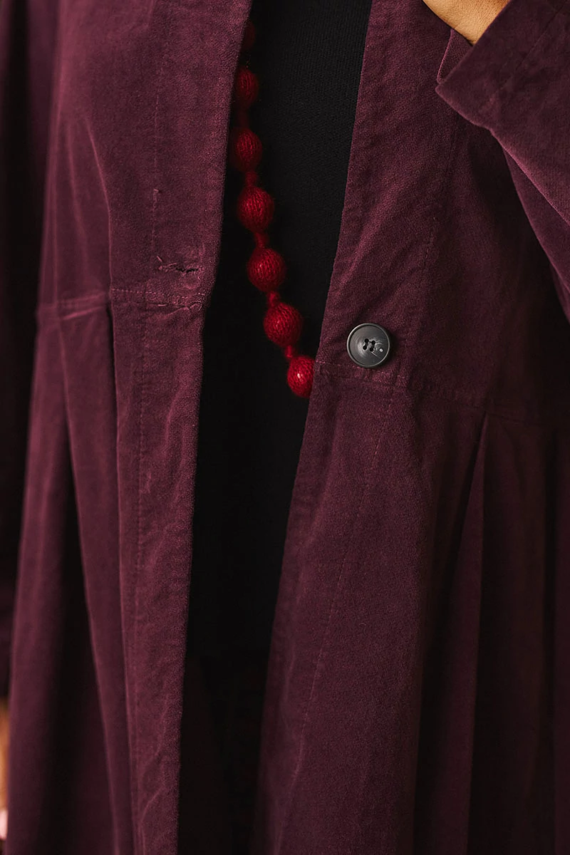 A hosszú düftin kabát a lezser, bő, ballon fazonja kényelmes mozgásteret biztosít, miközben karakteres sziluettet ad. Az elöl ívelt vonalvezetés és a gombos záródás klasszikus részletekkel gazdagítja a megjelenést, a gallér és a praktikus, varrásvonalba rejtett zsebek pedig időtállóvá és igazán szerethetővé teszik. A düftin a puha tapintása és természetes melegsége miatt tökéletes választás a hűvösebb napokra. Egy kabát, ami egyszerre stílusos és barátságosan ölelő.