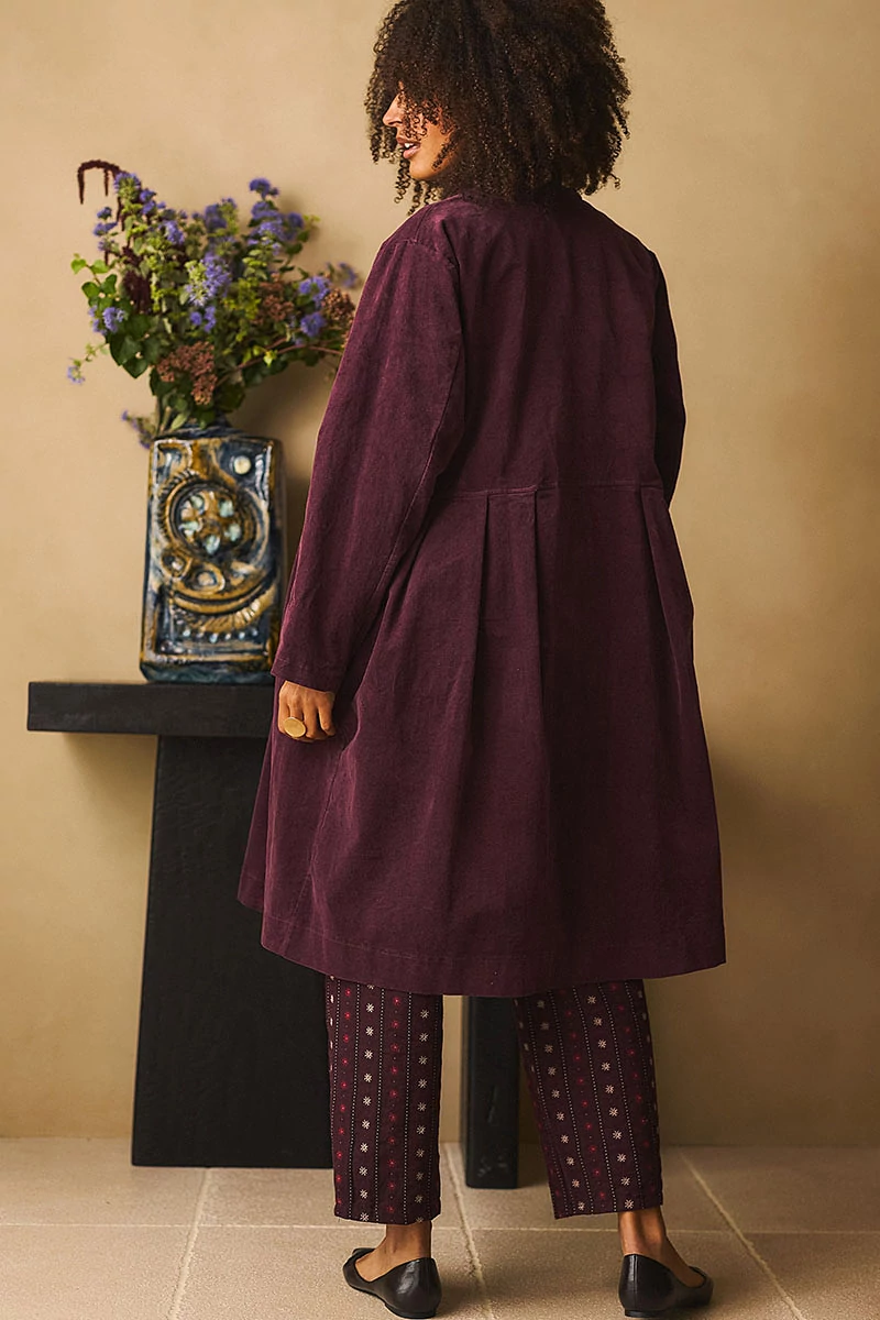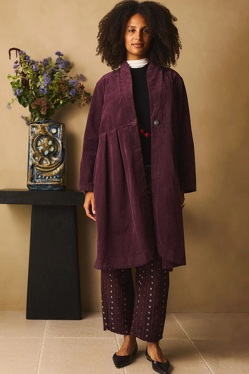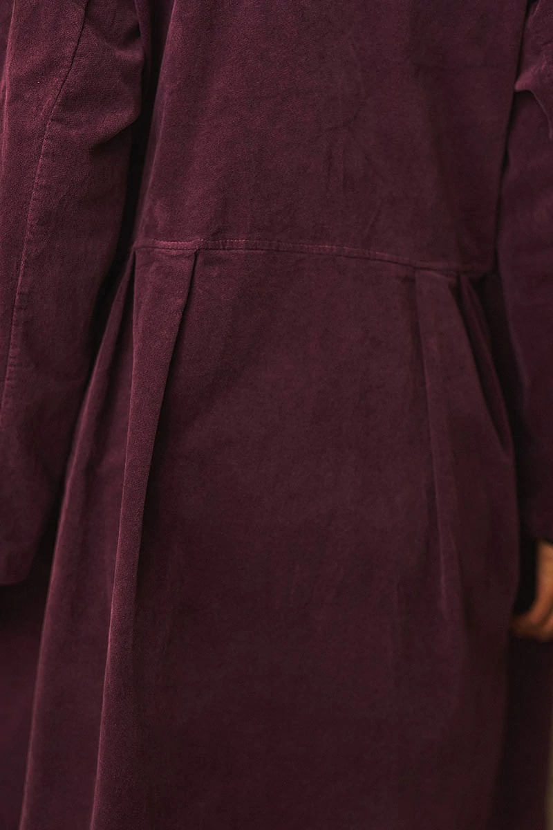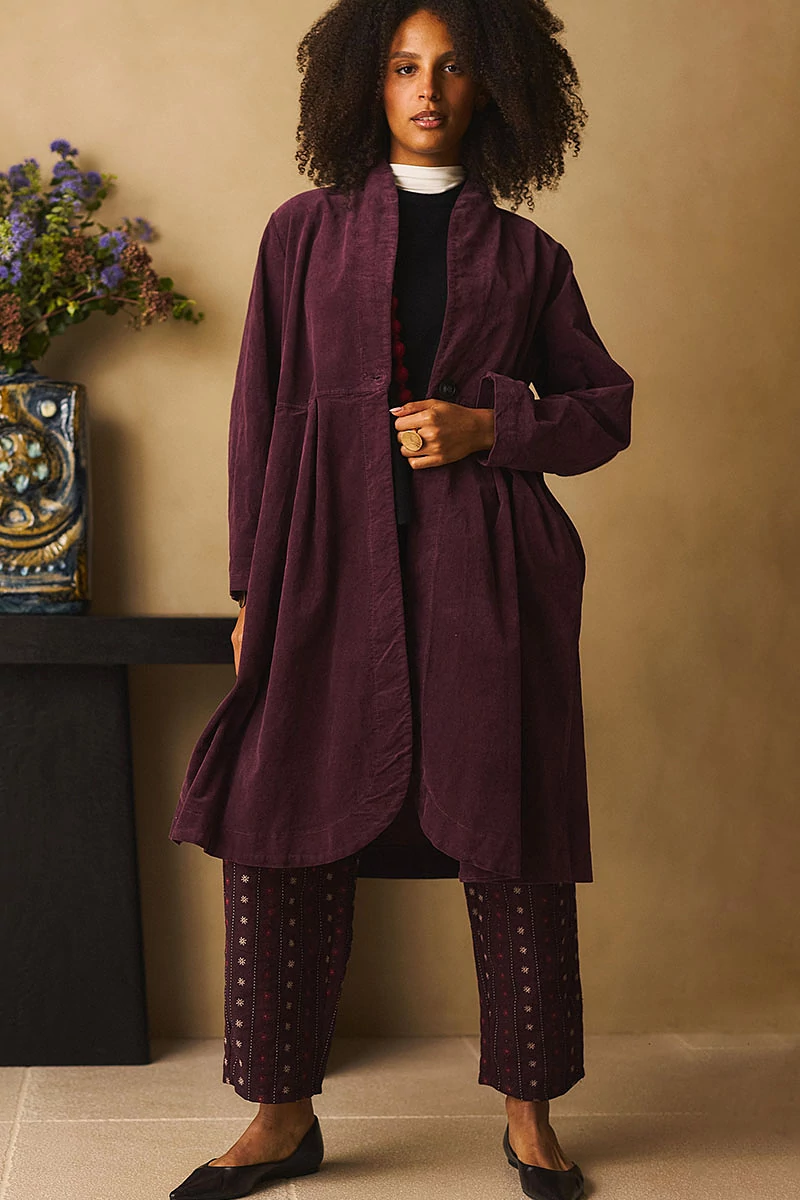 A hosszú düftin kabát a lezser, bő, ballon fazonja kényelmes mozgásteret biztosít, miközben karakteres sziluettet ad. Az elöl ívelt vonalvezetés és a gombos záródás klasszikus részletekkel gazdagítja a megjelenést, a gallér és a praktikus, varrásvonalba rejtett zsebek pedig időtállóvá és igazán szerethetővé teszik. A düftin a puha tapintása és természetes melegsége miatt tökéletes választás a hűvösebb napokra. Egy kabát, ami egyszerre stílusos és barátságosan ölelő.