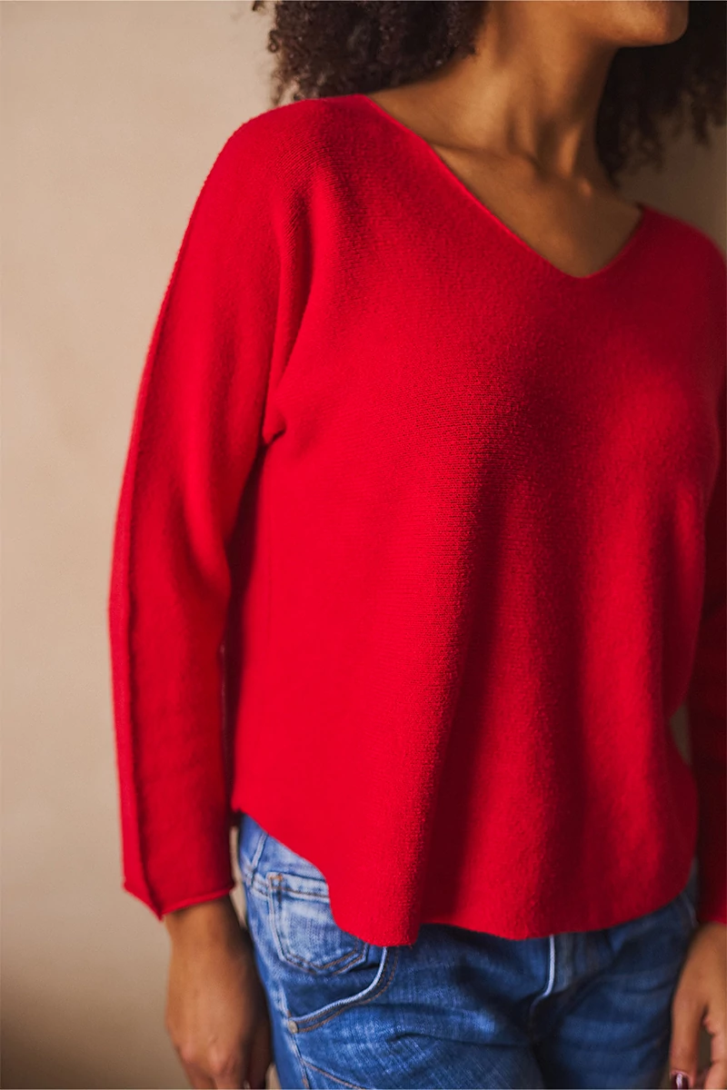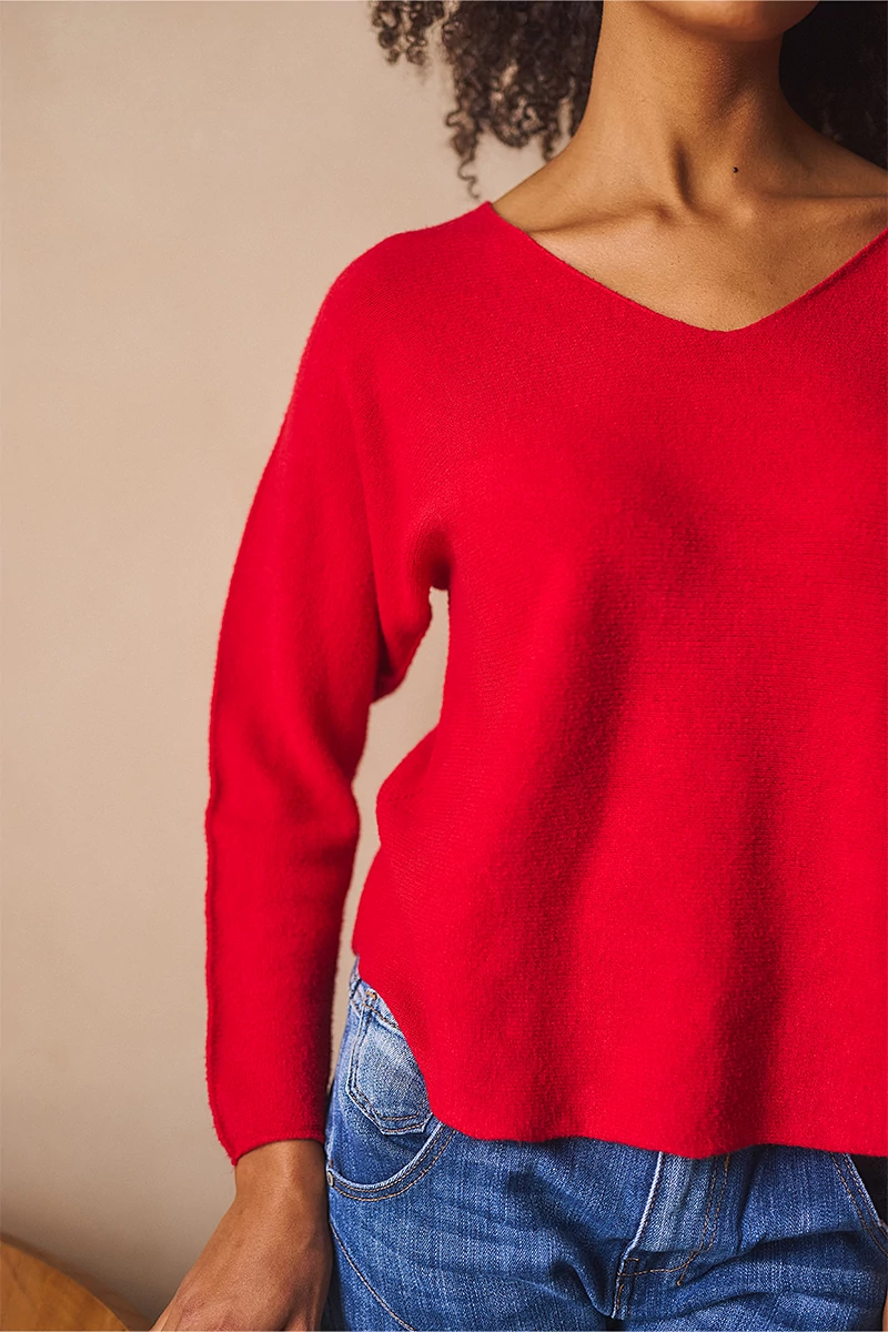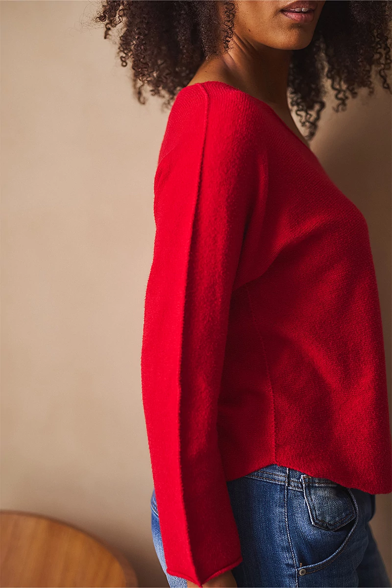 Lágy esésű, finom tapintású kötött felső, ami egyszerre kényelmes és nőies. A lezserebb fazon könnyed mozgást enged, miközben laza eleganciát sugall. Passzé nélküli végei szabadabb, játékosabb hatást keltenek, az ívelt nyakkivágás pedig kiemeli a nyak vonalát, így egyszerre sportosan természetes és finoman sikkes. A szezon legszebb színeiben ragyogó árnyalatok, amelyek azonnal feldobják a szürkébb napokat is.