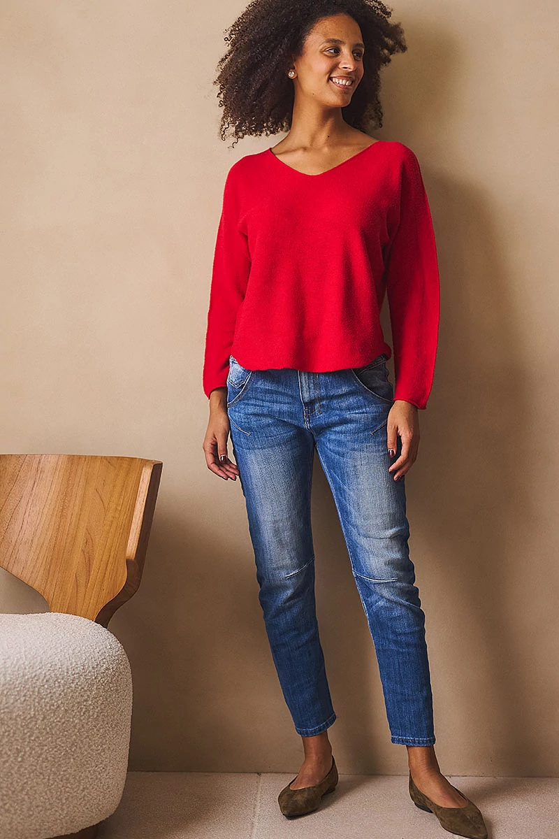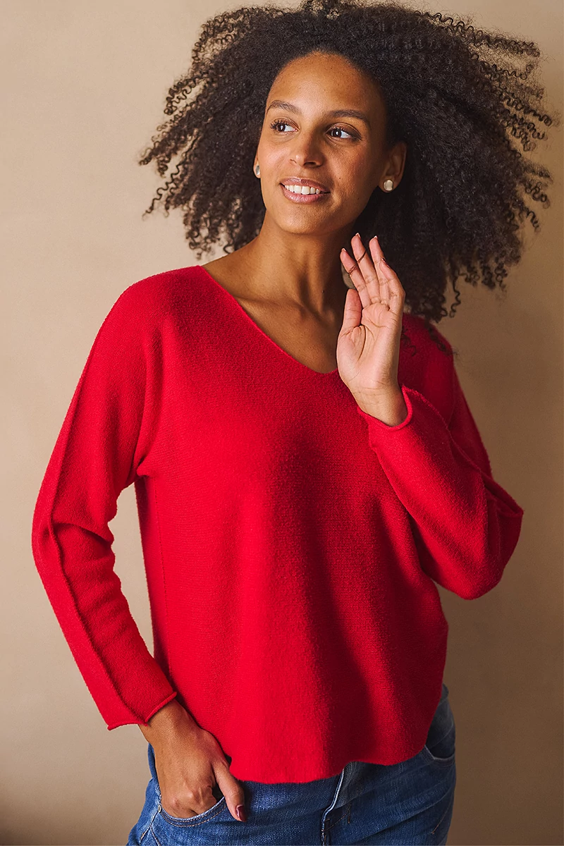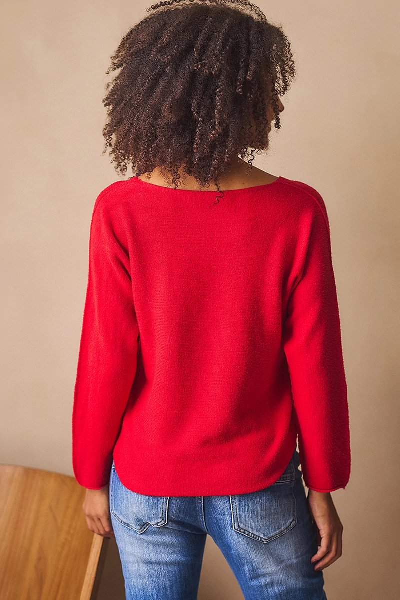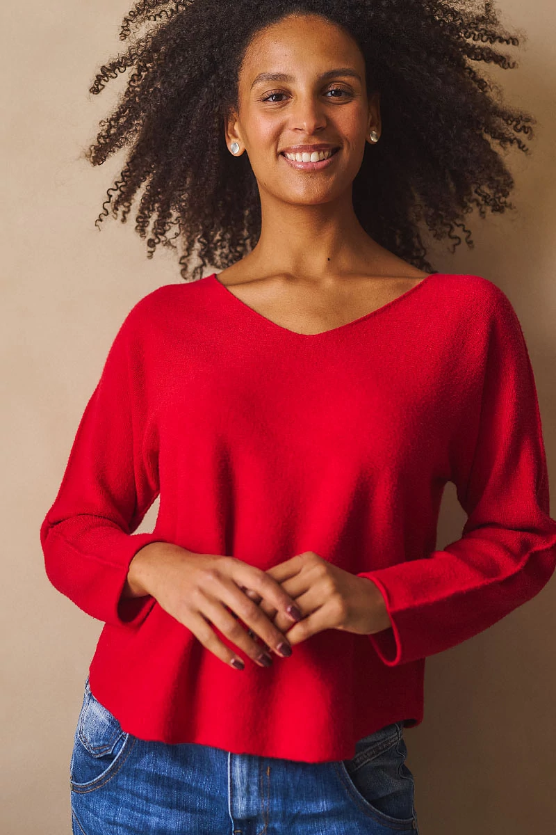 Lágy esésű, finom tapintású kötött felső, ami egyszerre kényelmes és nőies. A lezserebb fazon könnyed mozgást enged, miközben laza eleganciát sugall. Passzé nélküli végei szabadabb, játékosabb hatást keltenek, az ívelt nyakkivágás pedig kiemeli a nyak vonalát, így egyszerre sportosan természetes és finoman sikkes. A szezon legszebb színeiben ragyogó árnyalatok, amelyek azonnal feldobják a szürkébb napokat is.