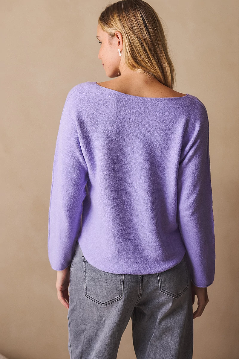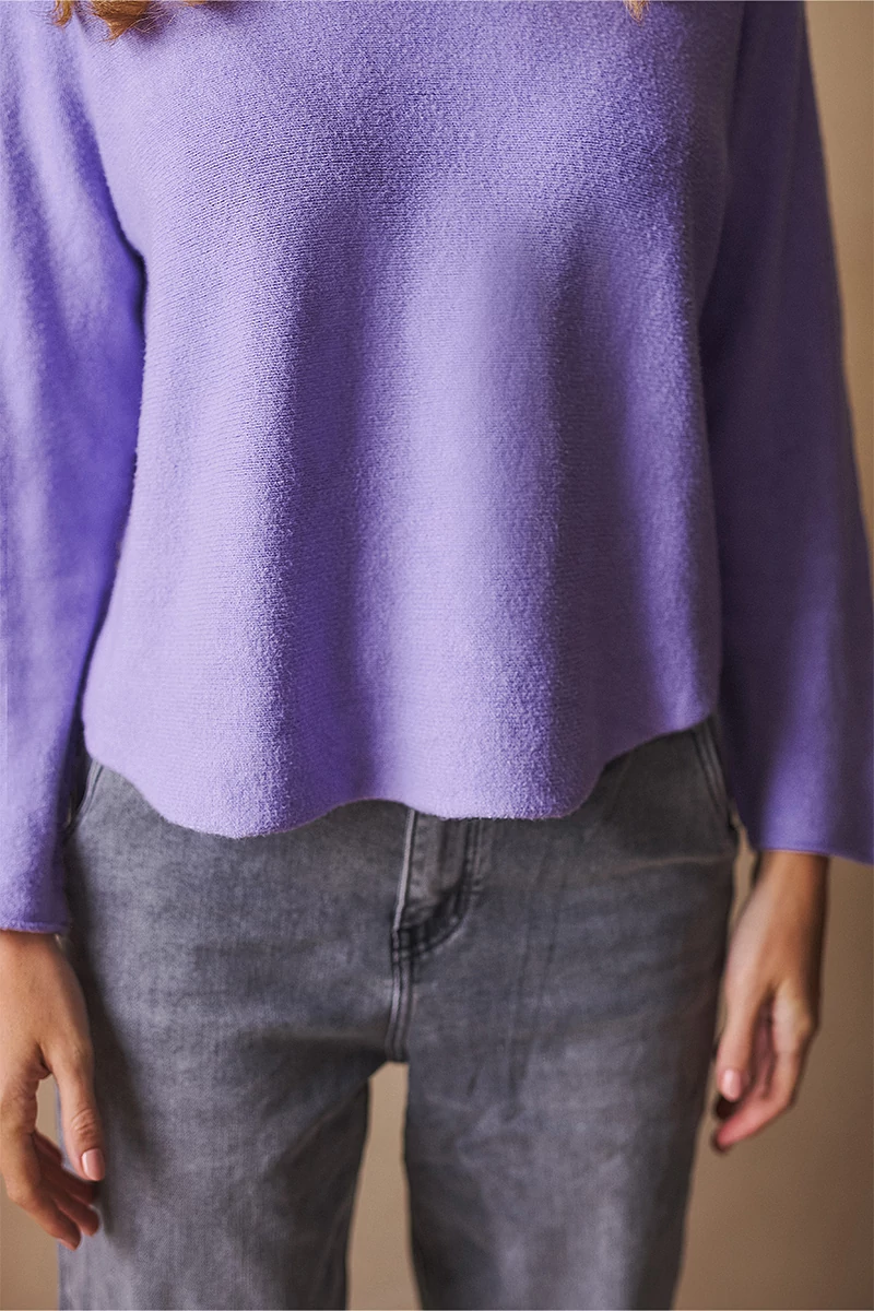 Lágy esésű, finom tapintású kötött felső, ami egyszerre kényelmes és nőies. A lezserebb fazon könnyed mozgást enged, miközben laza eleganciát sugall. Passzé nélküli végei szabadabb, játékosabb hatást keltenek, az ívelt nyakkivágás pedig kiemeli a nyak vonalát, így egyszerre sportosan természetes és finoman sikkes. A szezon legszebb színeiben ragyogó árnyalatok, amelyek azonnal feldobják a szürkébb napokat is.