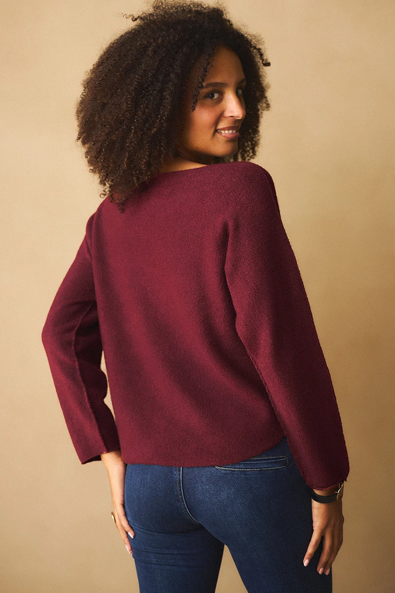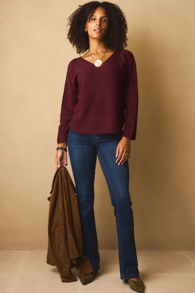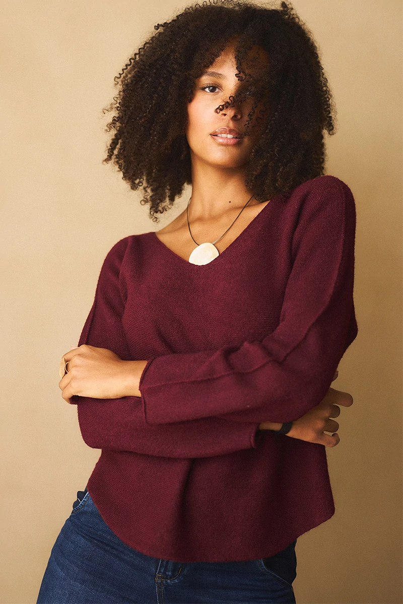 Lágy esésű, finom tapintású kötött felső, ami egyszerre kényelmes és nőies. A lezserebb fazon könnyed mozgást enged, miközben laza eleganciát sugall. Passzé nélküli végei szabadabb, játékosabb hatást keltenek, az ívelt nyakkivágás pedig kiemeli a nyak vonalát, így egyszerre sportosan természetes és finoman sikkes. A szezon legszebb színeiben ragyogó árnyalatok, amelyek azonnal feldobják a szürkébb napokat is.