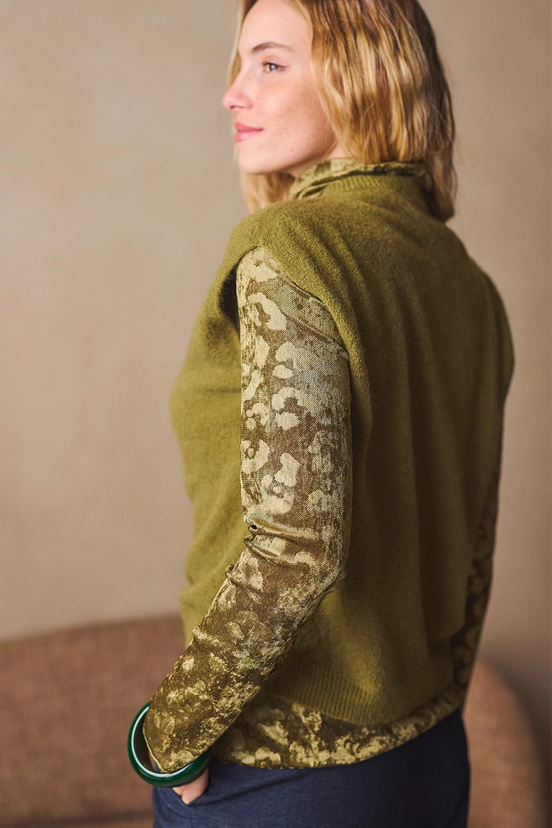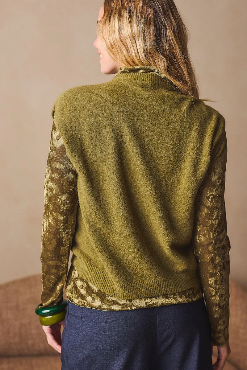 Egyenes vonalú, finomkötött mellény, kerek passzés nyakkal és passzé nélküli aljjal. A puha és meleg kötöttek változatossá és komfortossá teszik az őszi/téli öltözékeket.