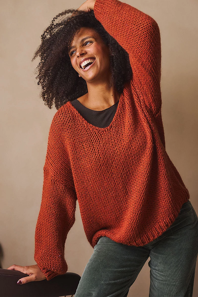 Színes kötötté hangulat. Lezser fazonú kötött pulóver igazi kedvenc alapdarab lehet az őszi–téli szezonban. V nyakkivágása nőies és nyújtja a felsőtest vonalát, a laza szabás pedig kényelmes, könnyed viseletet biztosít a mindennapokban. A pulóver színes, így mindenki megtalálhatja a hangulatához és stílusához illőt. Kombináld farmerrel a lezser hétköznapokra, vagy szoknyával az elegánsabb alkalmakra.