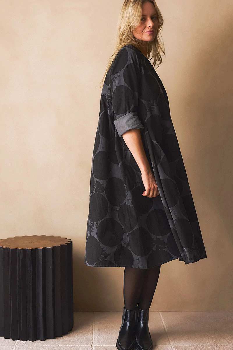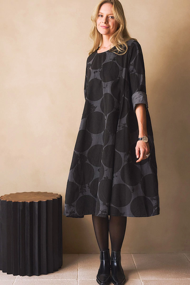 Könnyed, mégis karakteres darab ez a bővebb fazonú, mikrokord anyagból készült ruha az őszi-téli gardrób egyik legpraktikusabb alapja. Ovális nyakkivágás, lefele bővülő szoknyarész nőies lendületet ad a megjelenésnek. A puha, strapabíró mikrokord anyagnak köszönhetően egyszerre stílusos és kényelmes választás, amely a mindennapokban és különleges alkalmakon is megállja a helyét.