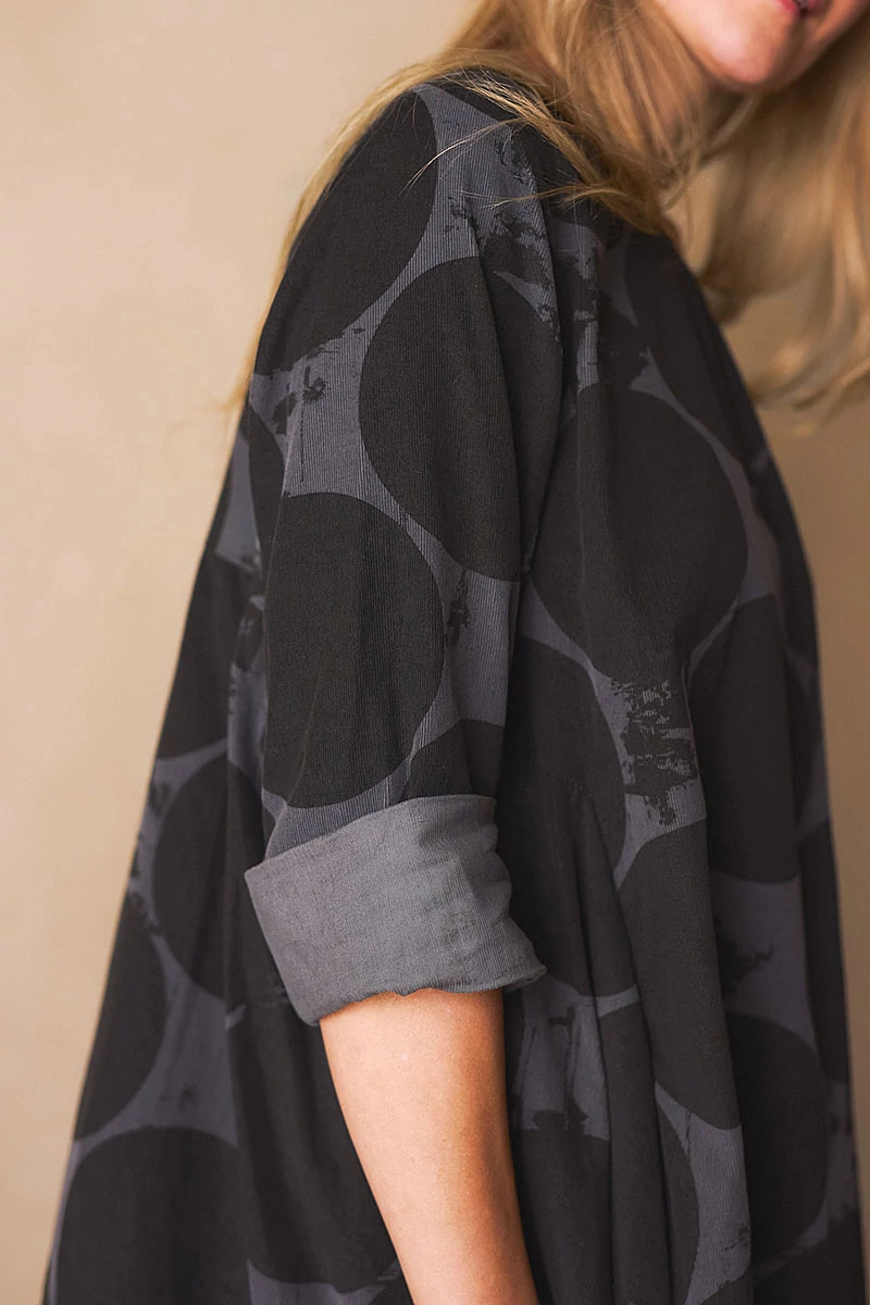 Válltól vállig 40 cm, mellvonalban 52 cm, derékvonalban 77 cm, csípővonalban 92 cm széles, hossza 111 cm, ujjhossza 59 cm, karöltő varrástól varrásig 26 cm.