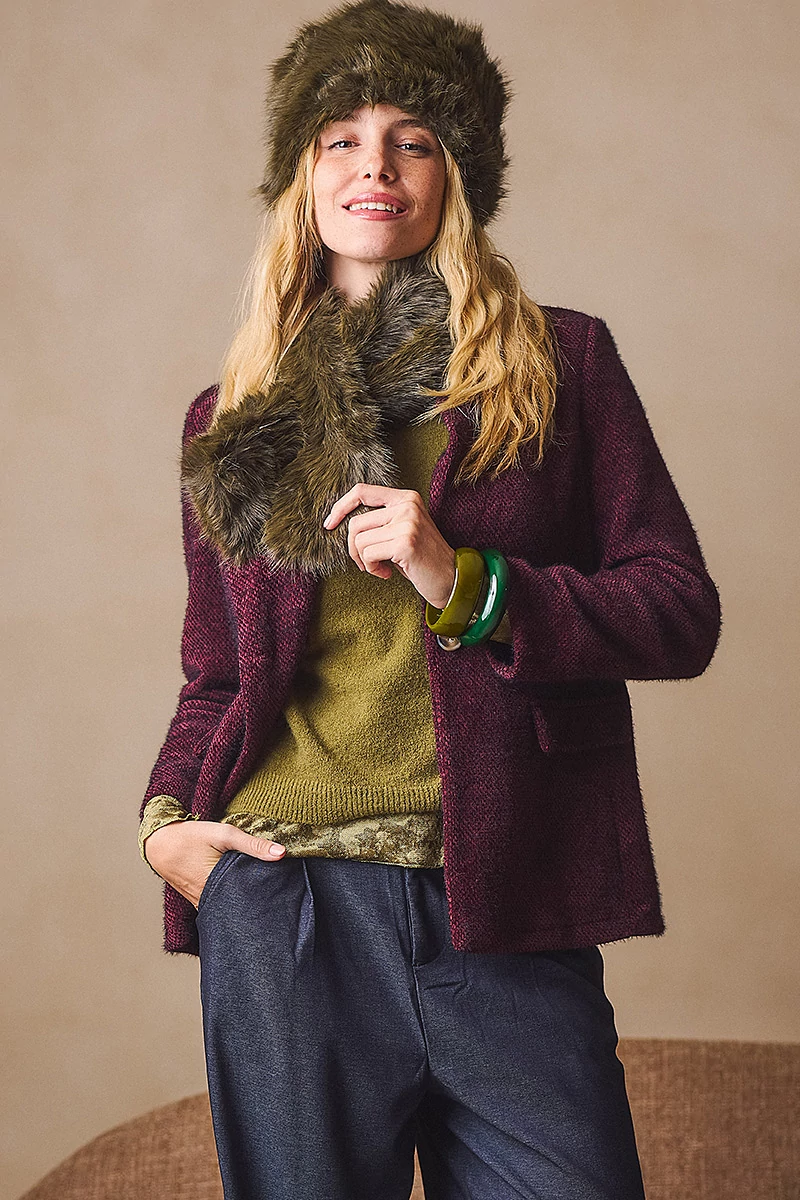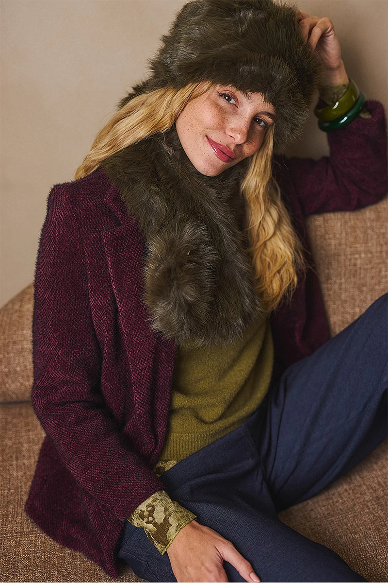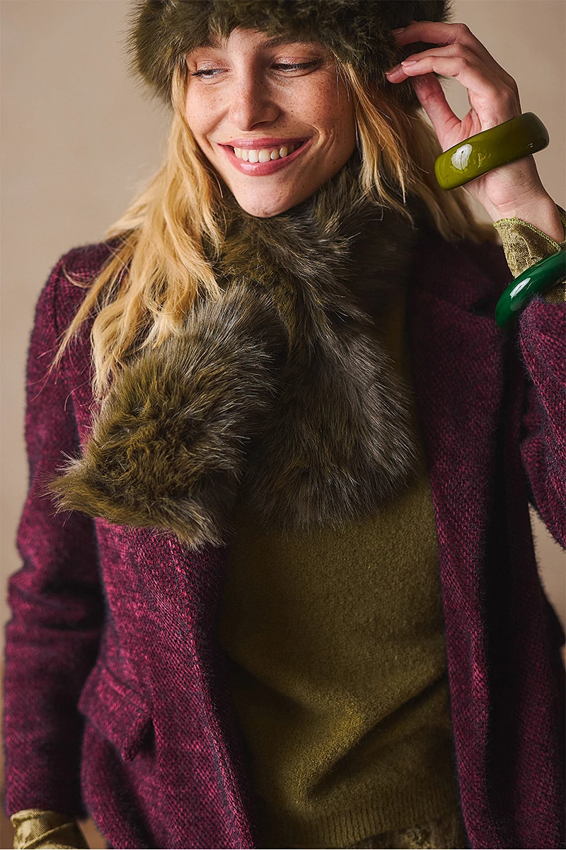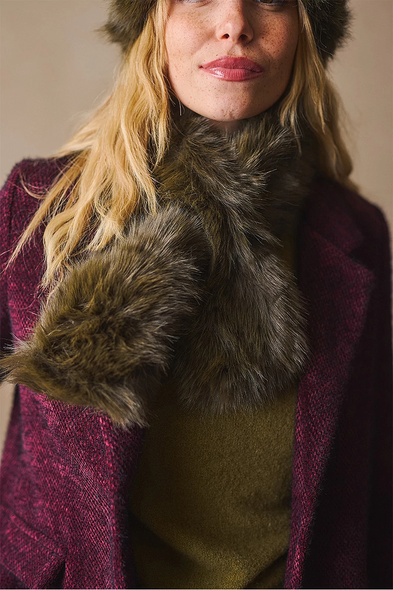 Puha, meleg műszörme sál, amely a klasszikus formával a téli napok legstílusosabb kiegészítője. Finoman ölel körbe, miközben elegáns csillogást és luxus érzetet kölcsönöz viselőjének. Melegségével és különleges textúrájával egyszerre praktikus és látványos választás a hideg évszakra.