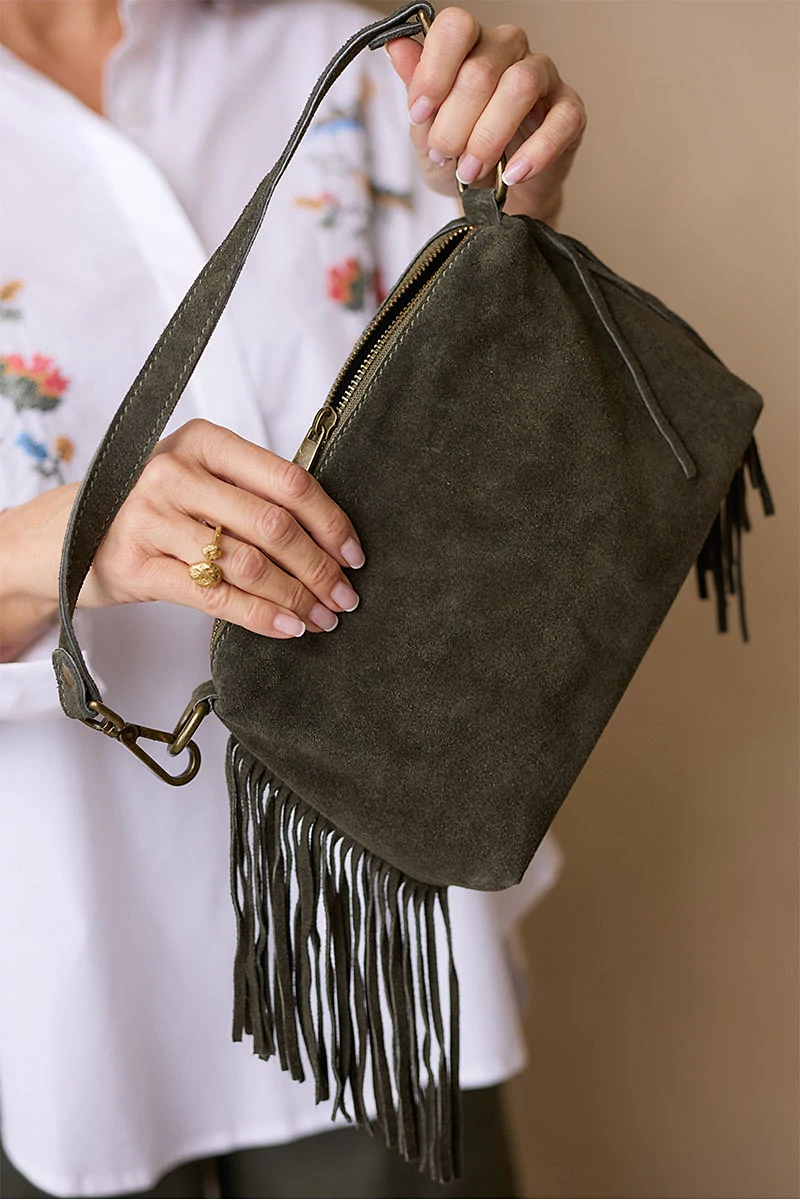 Sokoldalú elegancia. kisméretű, velúrbőr táska igazi mindennapi társ, amelyet levehető hosszú és rövid pántjának köszönhetően kényelmesen viselhetsz vállon vagy karon is. Belsejében bélés, egy cipzáros zseb segít rendszerezetten tárolni a dolgaidat. Felül cipzárral záródik, így biztonságosan őrzi a személyes tárgyakat.