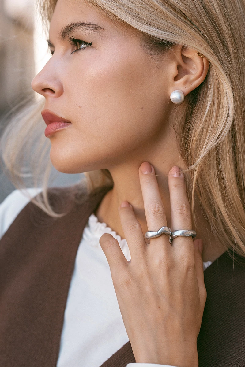 Kemény, 2 részes gyűrű szett. Hipoallergén és rozsdamentes. Az ékszer különlegessége az egyedi forma és mintázat. Opálos fényű felület, kézműves hatás.