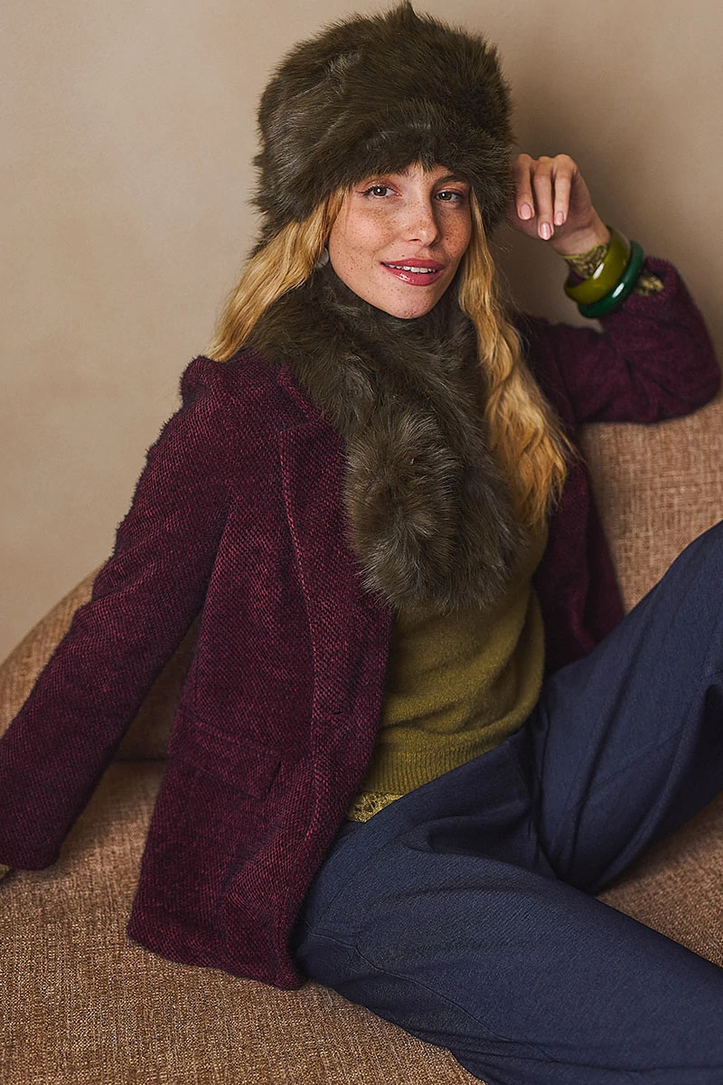 Puha, meleg műszörme sapka, amely a klasszikus kucsmaszerű formával a téli napok legstílusosabb kiegészítője. Finoman ölel körbe, miközben elegáns csillogást és luxus érzetet kölcsönöz viselőjének. Melegségével és különleges textúrájával egyszerre praktikus és látványos választás a hideg évszakra.