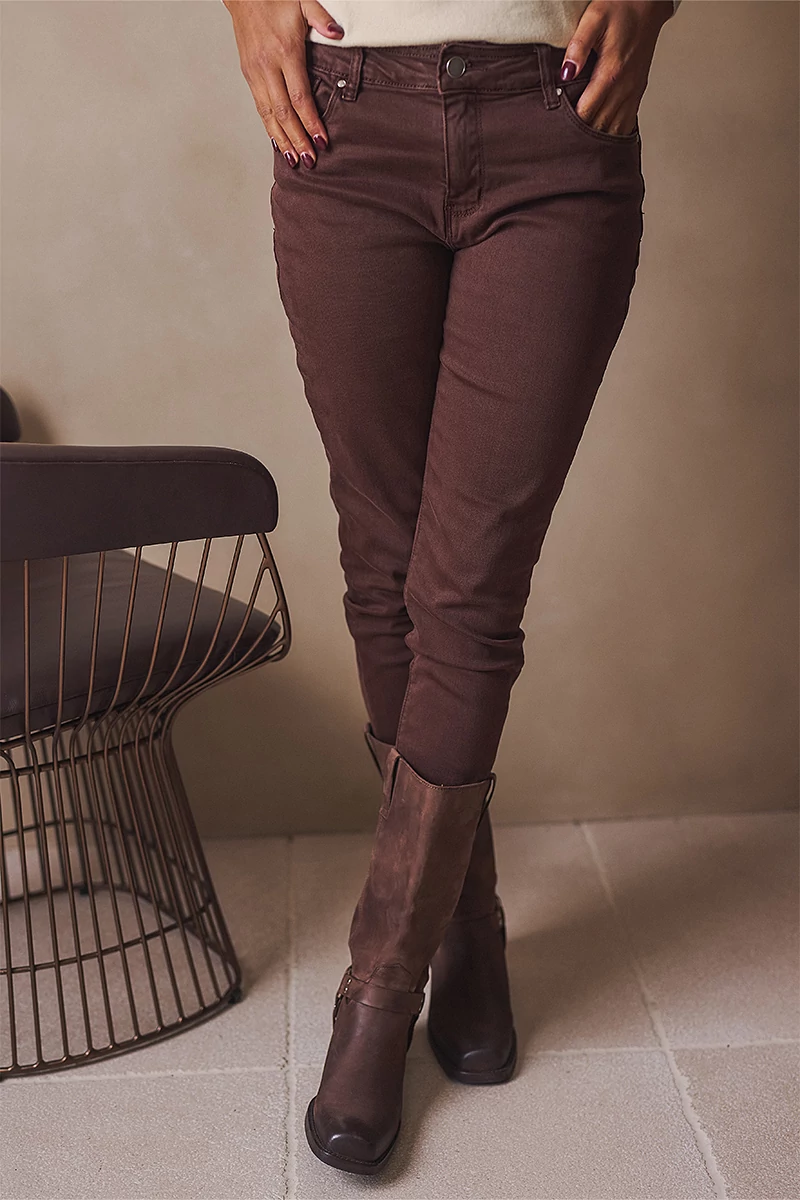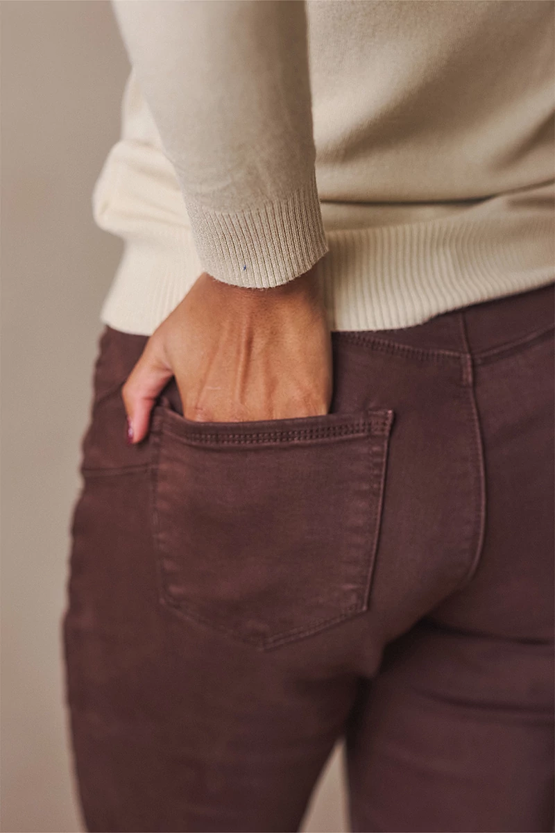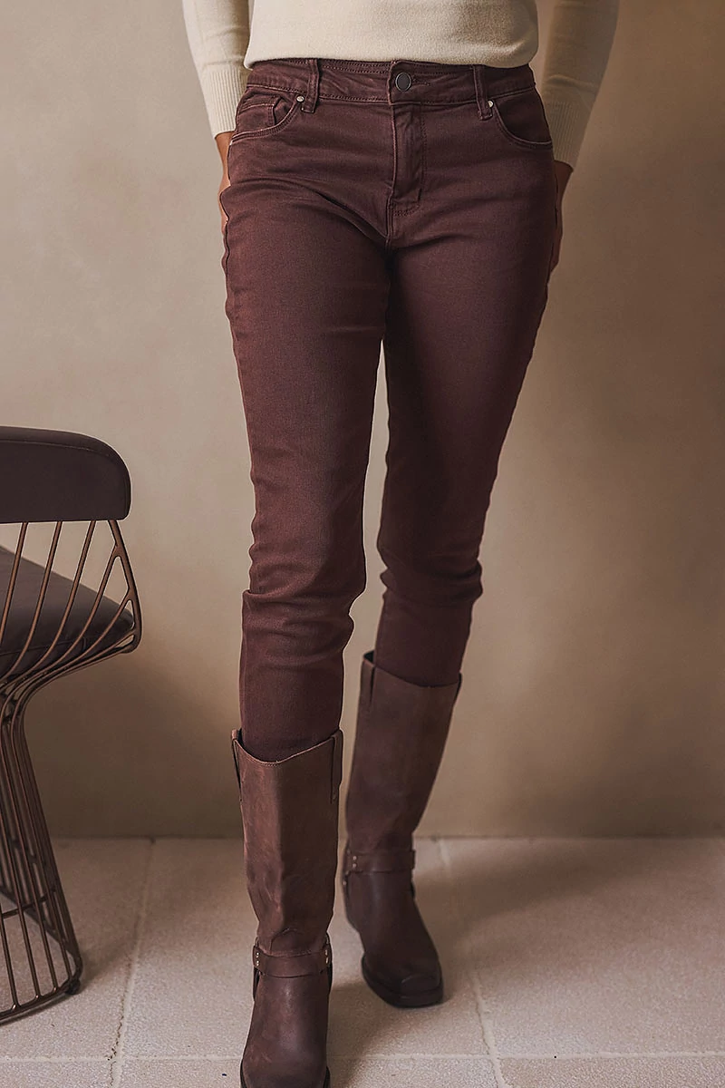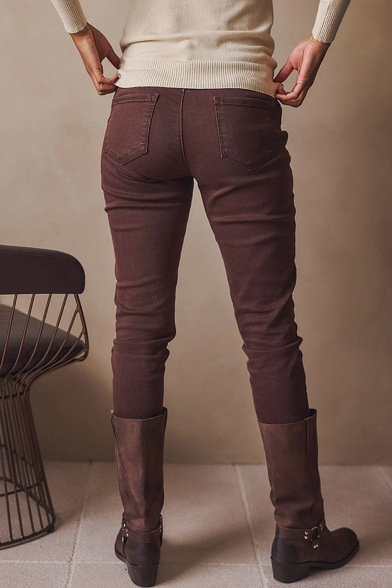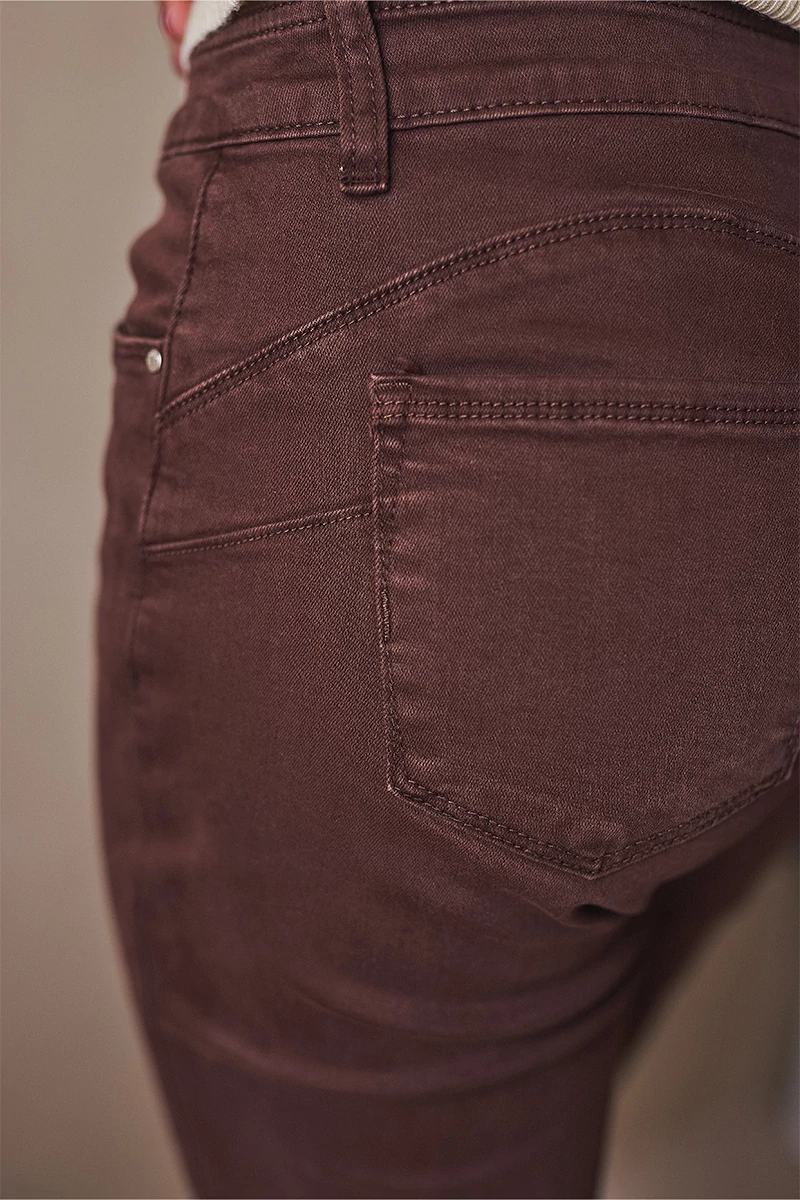 5 zsebes farmer, cipzáros üleppel, gombos, magas derékkal, push up hatással, szűk szárral. A nadrág normál szárhosszúságú.