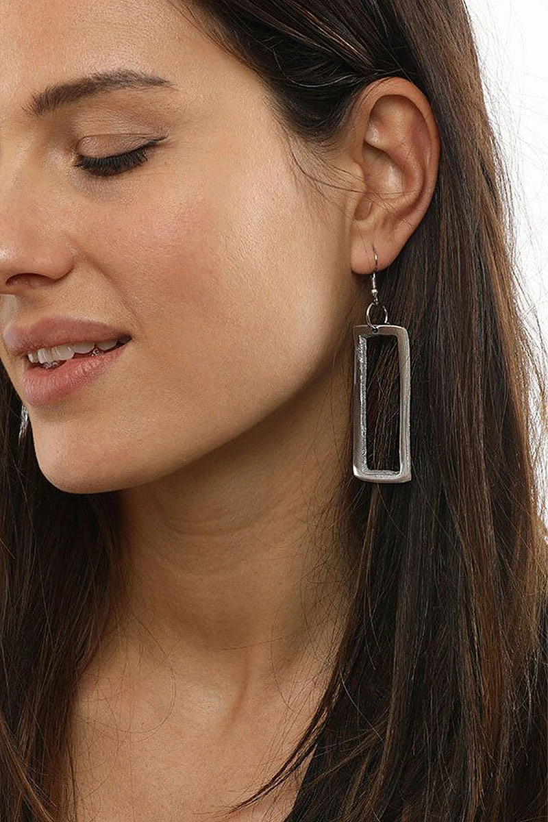 Függő fülbevaló dupla kör medálokkal. Kézzel készített 100%-ban újrahasznosított alumíniumból. A medál mérete 4,5 cm hosszú.